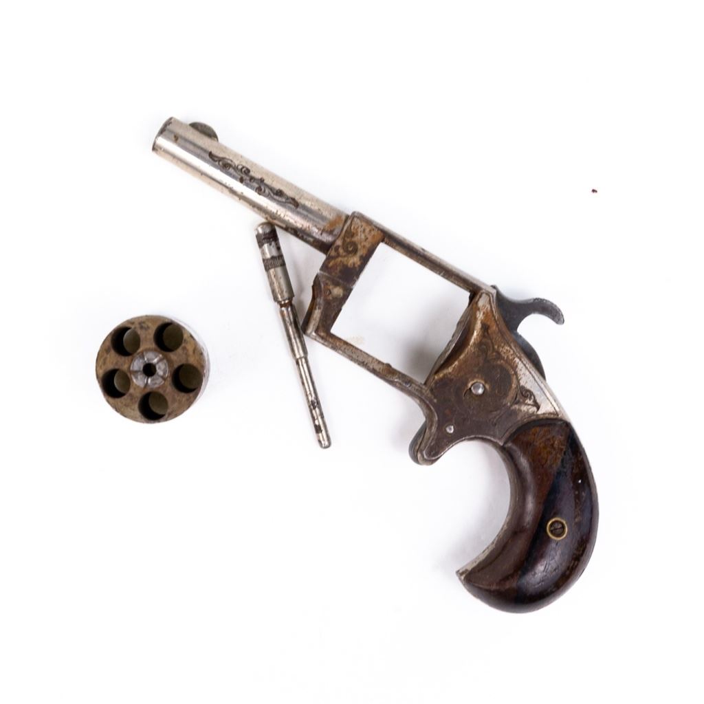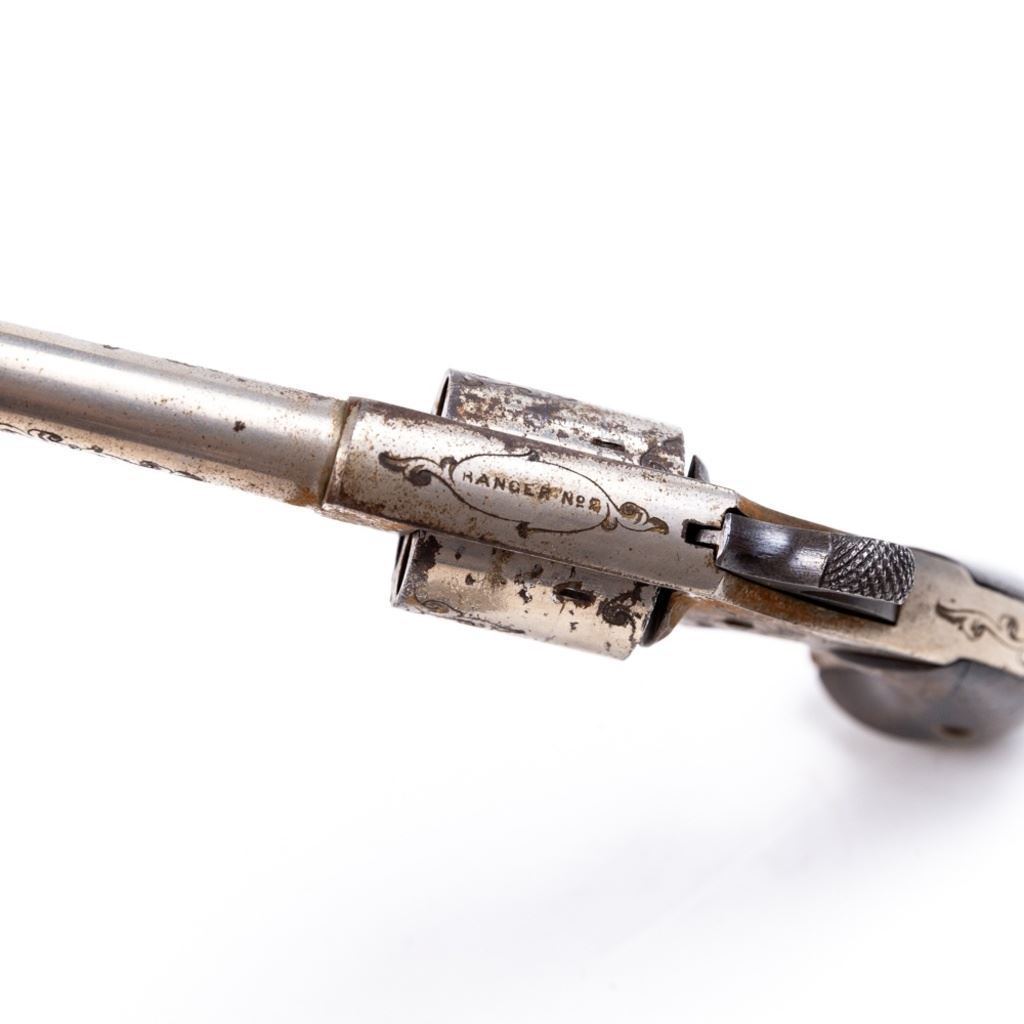 Hanger No2 .32 Revolver in poor condition with wear and oxidation. Cylinder doesn't advance. Good project gun. C&R Eligible S/N: 3018