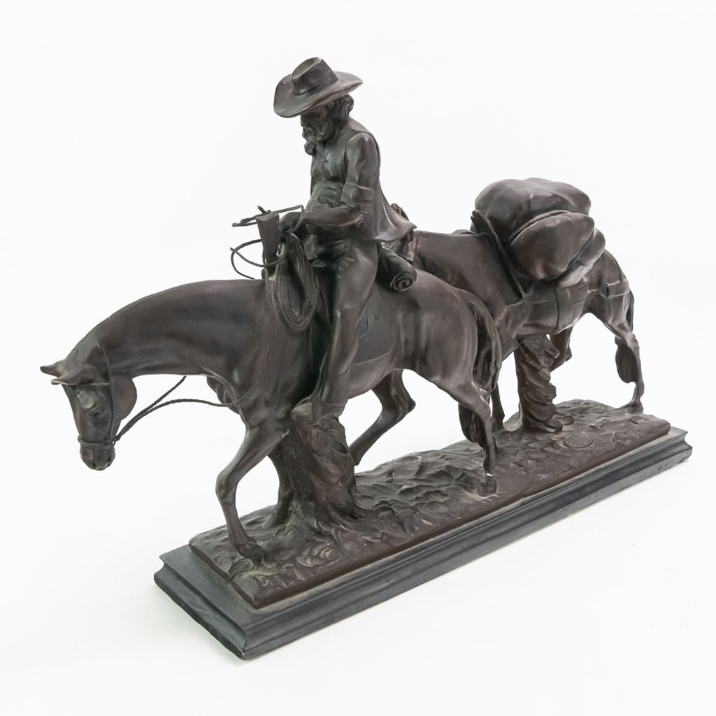 Lot 1355 Cowboy Leading Pack Horse Chalkware Statue