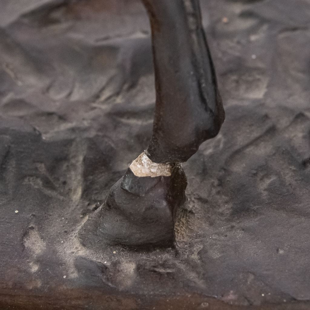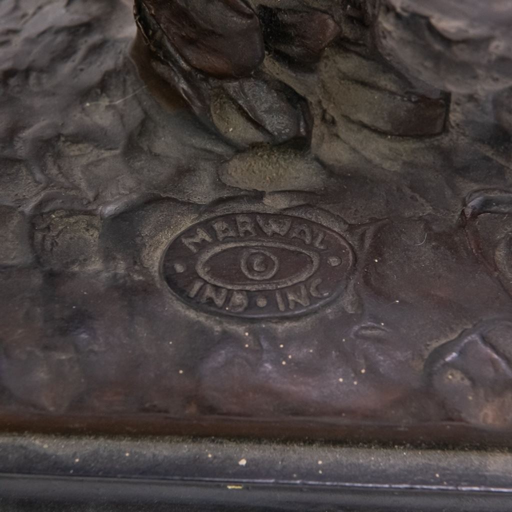 This chalkware on a wood base statue circa 1970's is marked Marwal Industries Inc.. Good condition with nice even color, wire rope is broken near cowboy's hand. Base measures 18 1/2" x 4 3/4". Height 14 1/2". Please review all photographs.