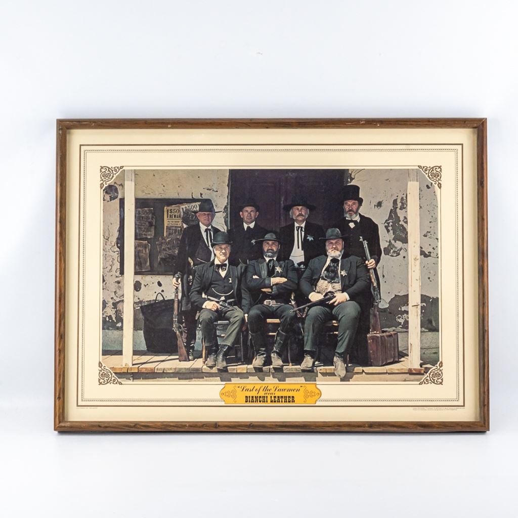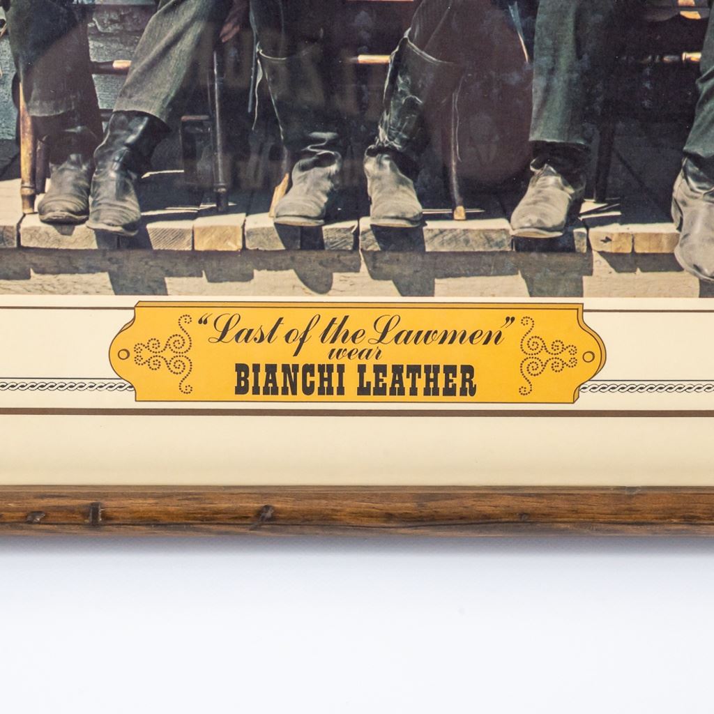 "Last of the Lawmen" Wear Bianchi Leather Framed Advertising Print in very good condition. Circa 1975-76