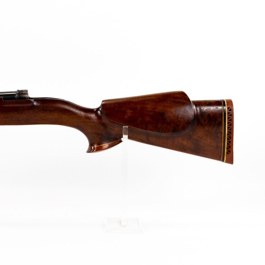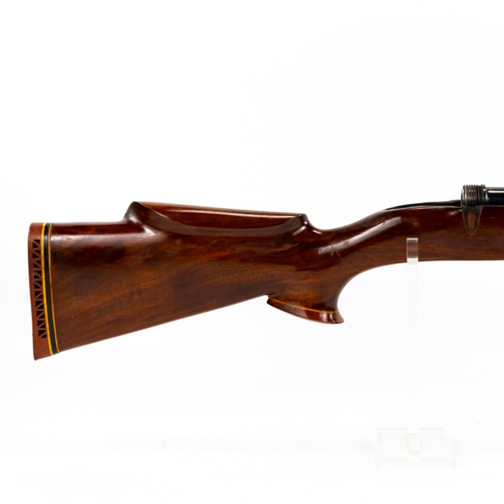 Mauser 8mm barrel in very good condition with light wear. Modern front sight, Bore is very good with light frost. Nice wood stock with light wear. Pistol grip and fore end wood cap. Monte Carlo cheek rise. Pachmahr recoil pad.
