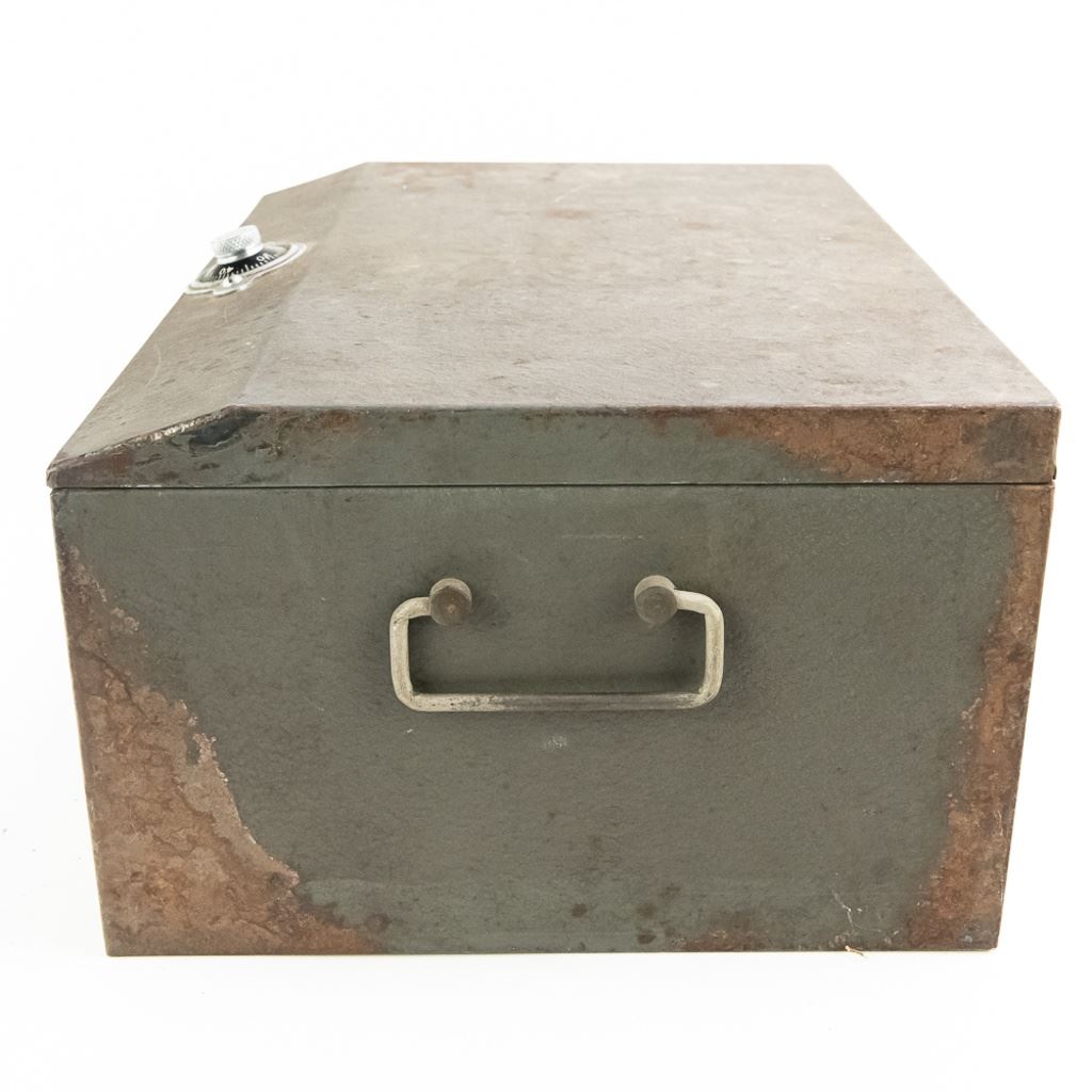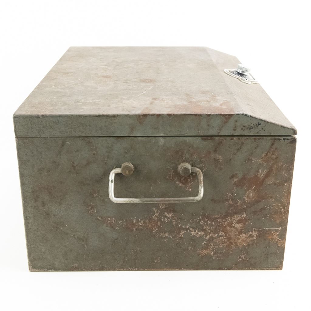 Steel Strong Box with Combination Lock and carrying handles with some surface rust. 16"x12"x8.5"