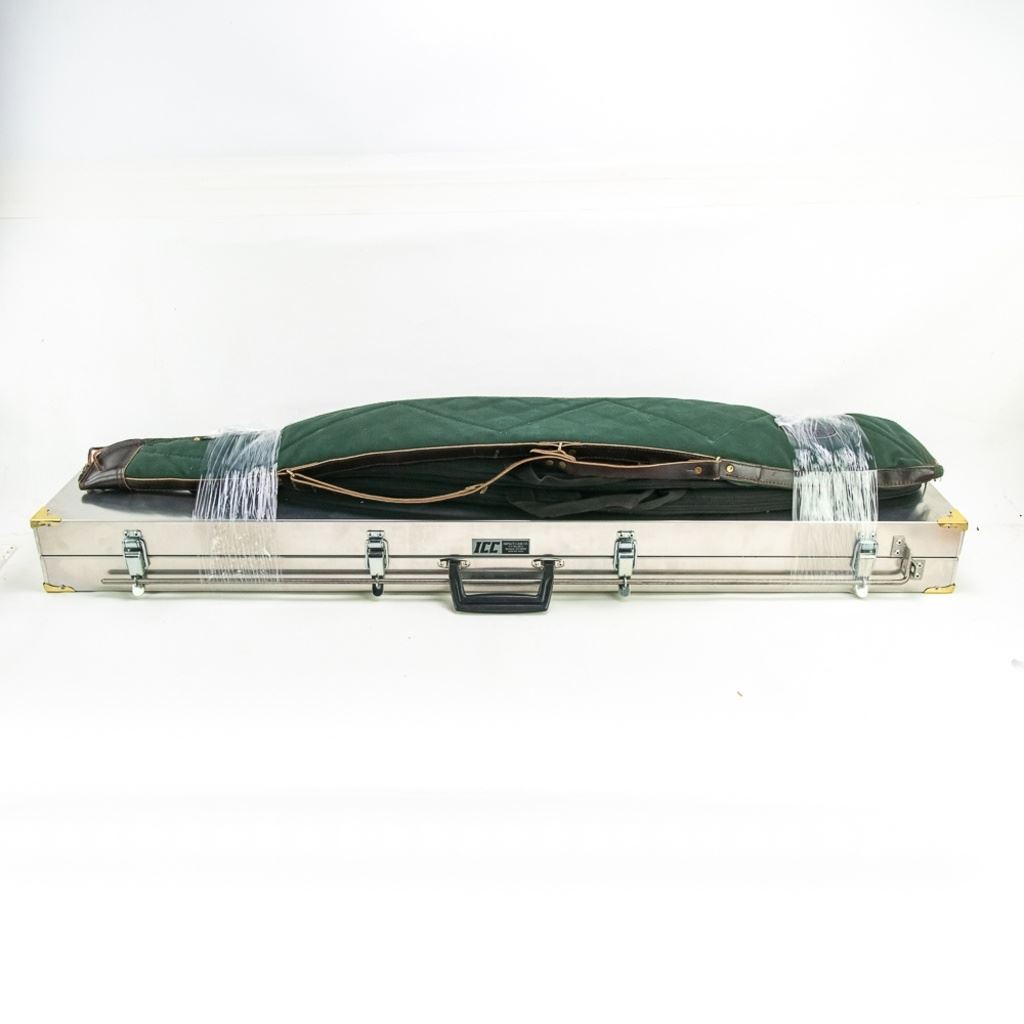 ICC 52x10x6" Aluminum Security Longarm Case w/ lock rod in almost LIKE NEW condition w/minor scratches, and three very nice BOYD soft cases, 42", 44" 48"