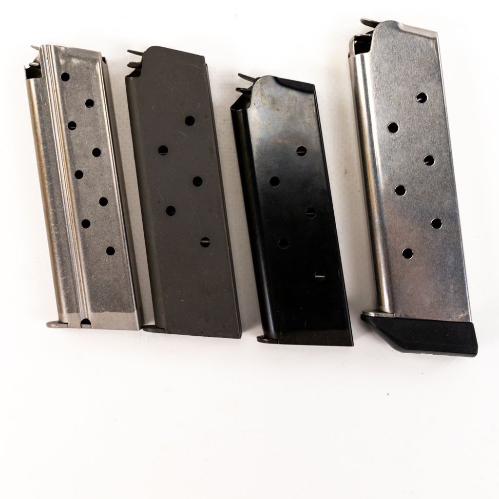 -2x full size Randall .45acp, 2x unknown full size 45 acp, 1x Colt full size 45acp, 1x Colt compact 45acp, 1x J&J s/s full size 45acp w/slam pad, 1x Colt full size s/s 38 Super, 1x "M291"