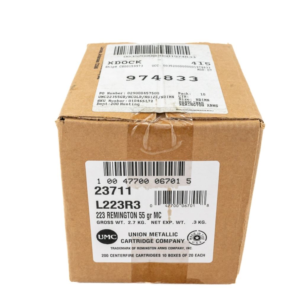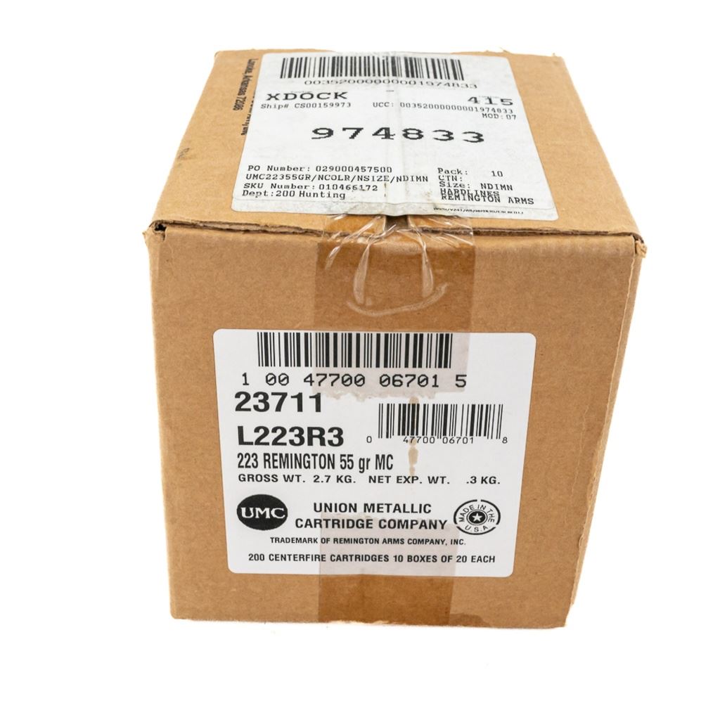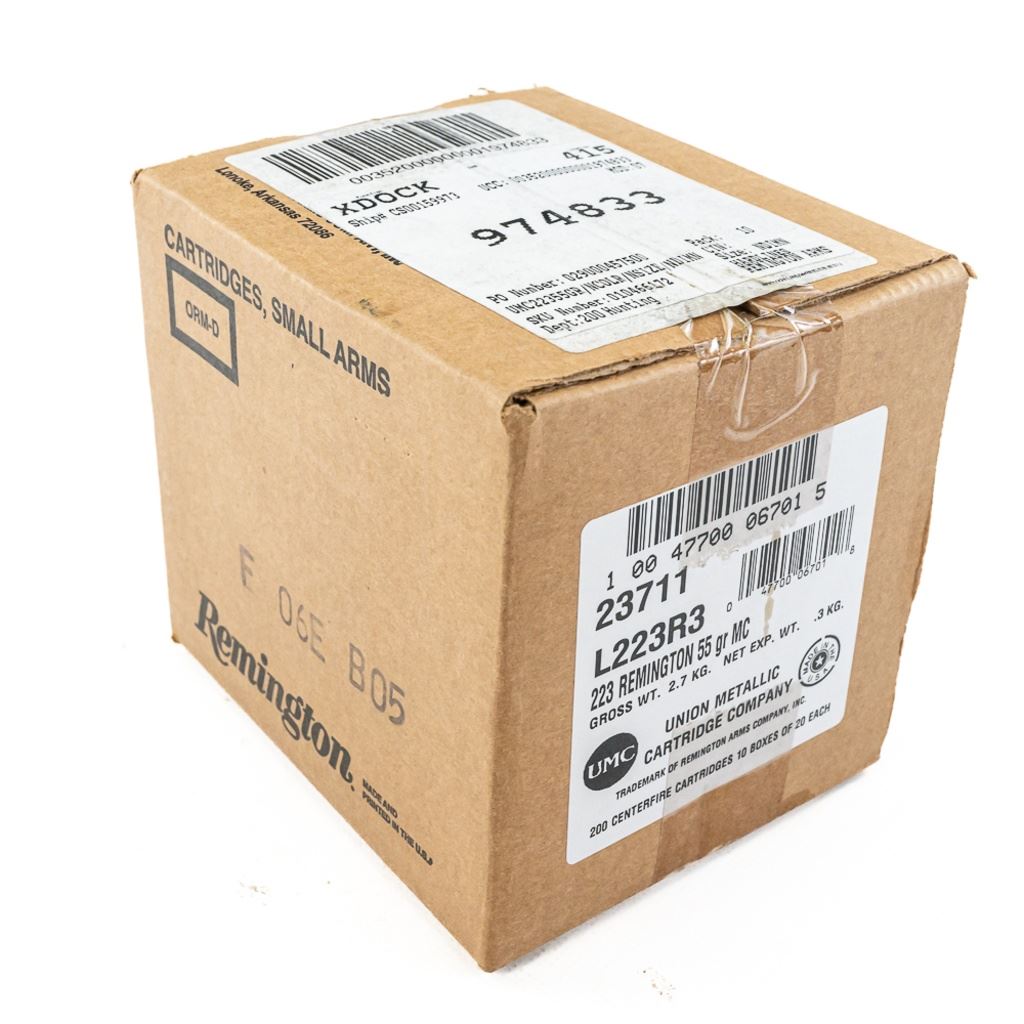200rds NEW! Remington UMC .223 Ammunition 55gr MC IN COMPLIANCE WITH ILLINOIS LAW, ALL AMMUNITION, PRIMERS AND GUNPOWDER SALES TO ILLINOIS RESIDENTS MUST BE ACCOMPANIED WITH A VALID FOID CARD FROM THE ACTUAL PURCHASER AND MUST WAIT FOR AN ELECTRONIC VERIFICATION BY THE STATE BEFORE TAKING HOME.