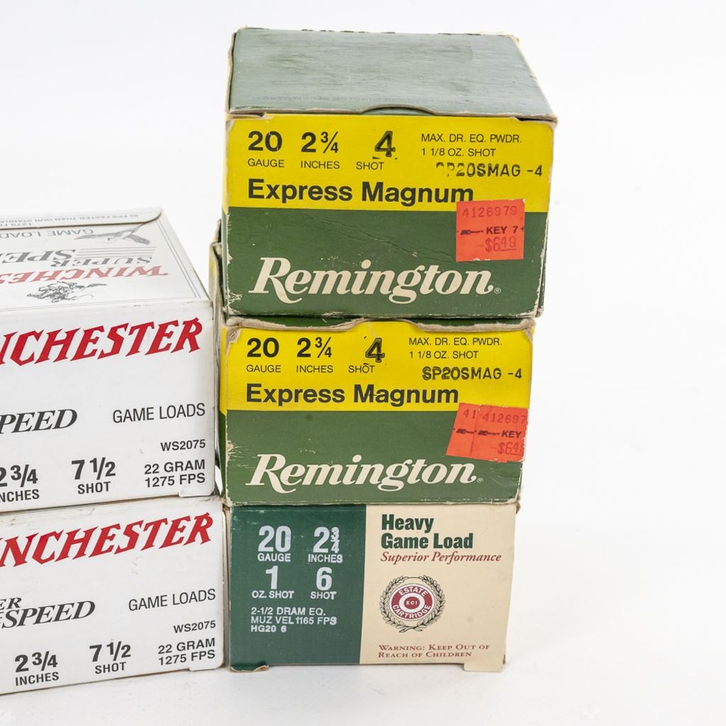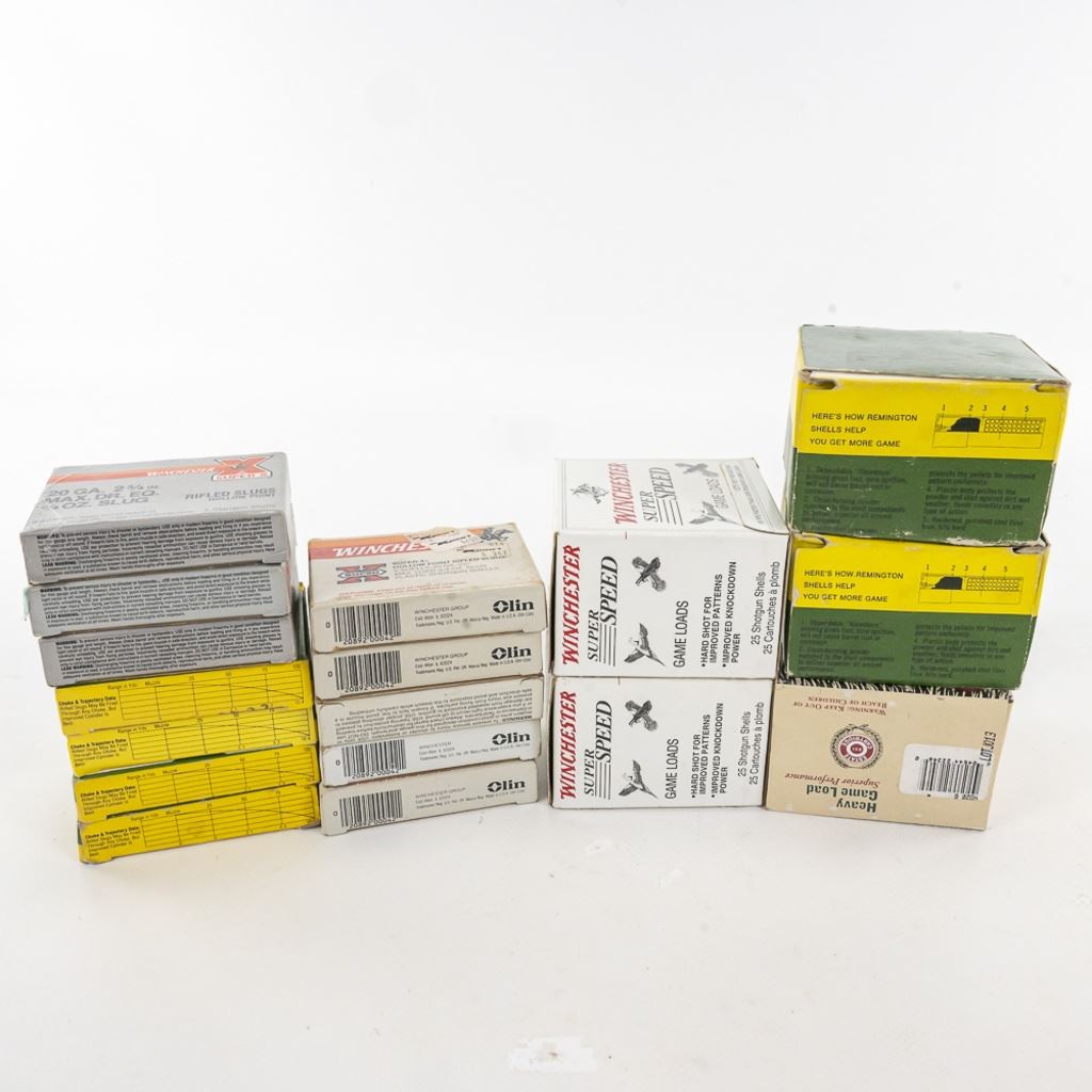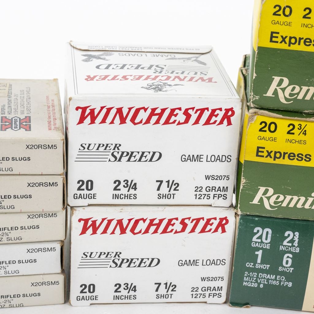 60rds of 20ga shotgun slugs from various manufacturers, lot also includes 125rds of 20ga field and game loads of various shot sizes. See photos IN COMPLIANCE WITH ILLINOIS LAW, ALL AMMUNITION, PRIMERS AND GUNPOWDER SALES TO ILLINOIS RESIDENTS MUST BE ACCOMPANIED WITH A VALID FOID CARD FROM THE ACTUAL PURCHASER AND MUST WAIT FOR AN ELECTRONIC VERIFICATION BY THE STATE BEFORE TAKING HOME.