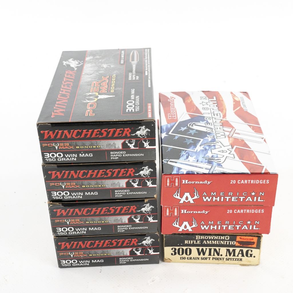 120Rds of .300 Winchester Magnum rifle ammunition. 80 rds of WInchester, and 40rds of Federal ammunition. Lot also includes partial box of fired casings for reloading. See photos. IN COMPLIANCE WITH ILLINOIS LAW, ALL AMMUNITION, PRIMERS AND GUNPOWDER SALES TO ILLINOIS RESIDENTS MUST BE ACCOMPANIED WITH A VALID FOID CARD FROM THE ACTUAL PURCHASER AND MUST WAIT FOR AN ELECTRONIC VERIFICATION BY THE STATE BEFORE TAKING HOME.
