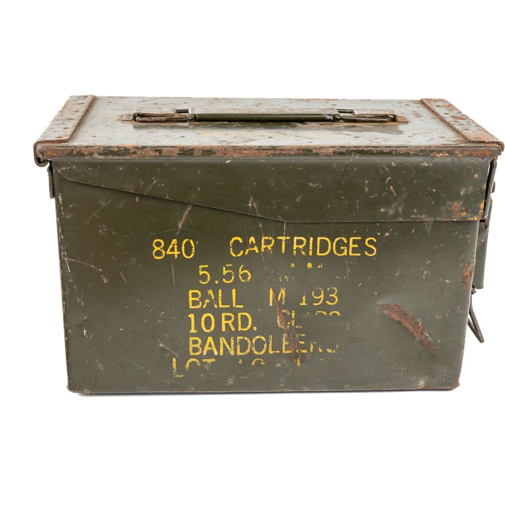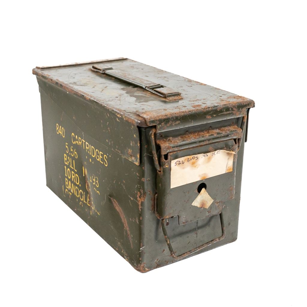 400+ rounds of .223/556 ammunition. Ammunition is loose packed in .50cal metal ammunition can. Ammunition is presumed to be new production surplus. See photos. IN COMPLIANCE WITH ILLINOIS LAW, ALL AMMUNITION, PRIMERS AND GUNPOWDER SALES TO ILLINOIS RESIDENTS MUST BE ACCOMPANIED WITH A VALID FOID CARD FROM THE ACTUAL PURCHASER AND MUST WAIT FOR AN ELECTRONIC VERIFICATION BY THE STATE BEFORE TAKING HOME.
