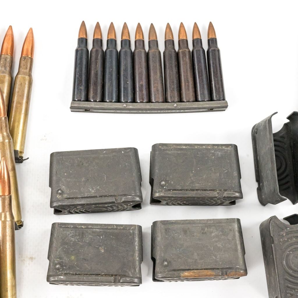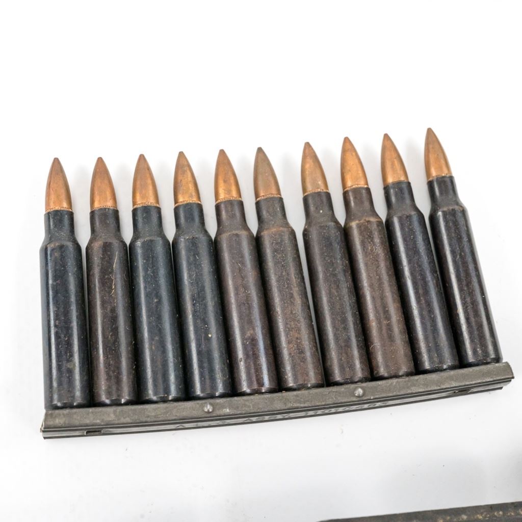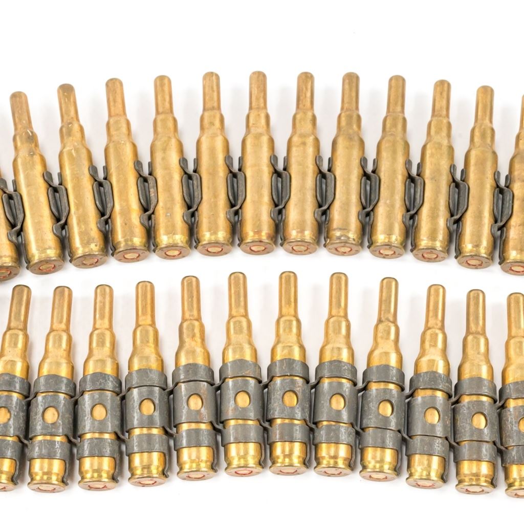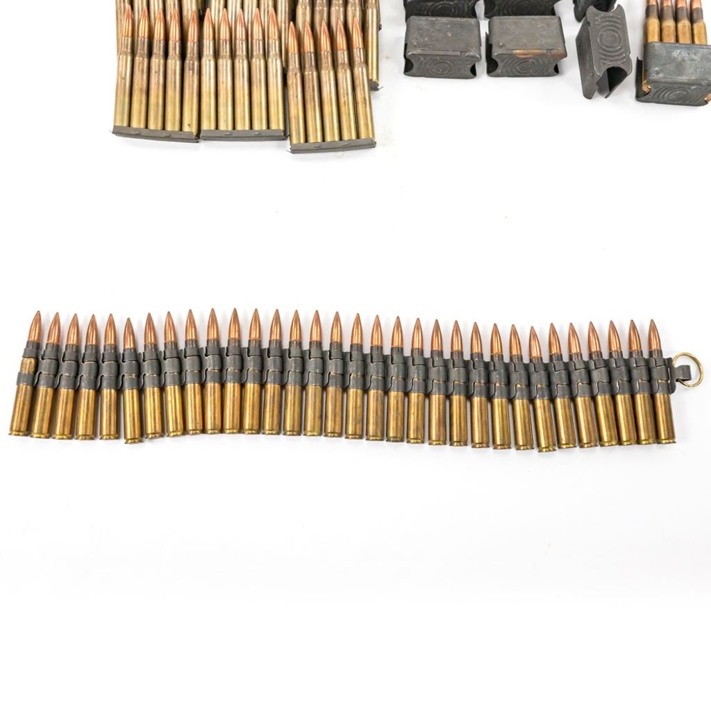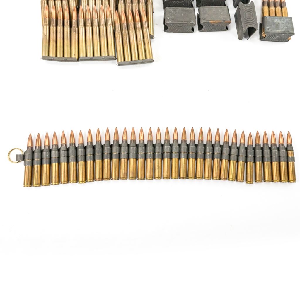 32x linked rounds LC54, 74x linked LC67 BLANKS, 16x rds LC57 in Enblocs, 60rds BN40 in strippers, 6x empty Enblocs IN COMPLIANCE WITH ILLINOIS LAW, ALL AMMUNITION, PRIMERS AND GUNPOWDER SALES TO ILLINOIS RESIDENTS MUST BE ACCOMPANIED WITH A VALID FOID CARD FROM THE ACTUAL PURCHASER AND MUST WAIT FOR AN ELECTRONIC VERIFICATION BY THE STATE BEFORE TAKING HOME.