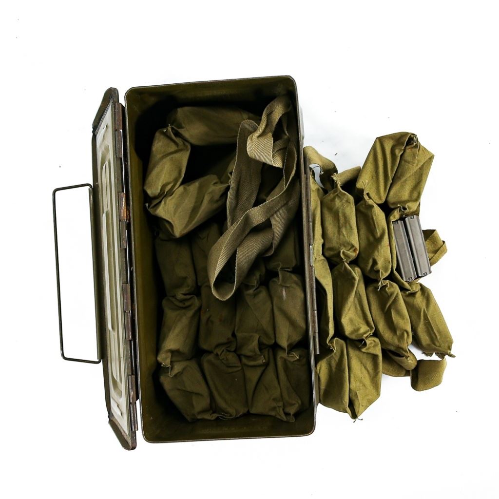 5 Bandoleers (285rds) of "DEN 41" .30 M2 in 5rd clips And 50cal side load can