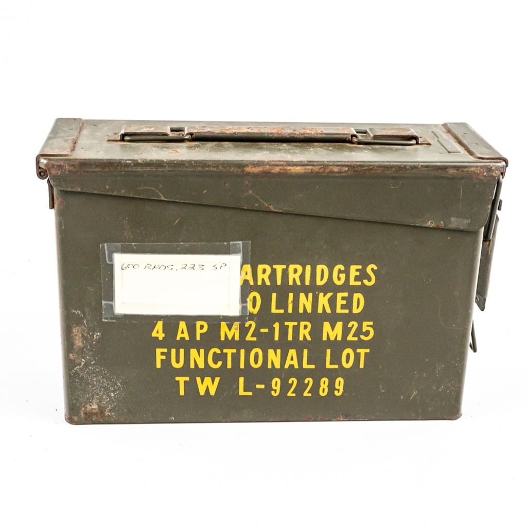 600rds of .223 Remington Soft Point hunting ammunition. Reloaded ammunition appears to be on mostly surplus casings. Ammunition is partially packed on stripper clips and in paper holders. See photos. IN COMPLIANCE WITH ILLINOIS LAW, ALL AMMUNITION, PRIMERS AND GUNPOWDER SALES TO ILLINOIS RESIDENTS MUST BE ACCOMPANIED WITH A VALID FOID CARD FROM THE ACTUAL PURCHASER AND MUST WAIT FOR AN ELECTRONIC VERIFICATION BY THE STATE BEFORE TAKING HOME.