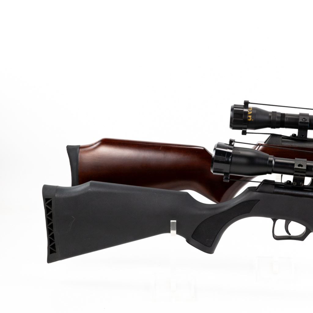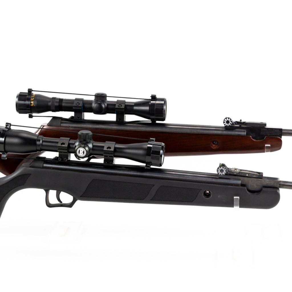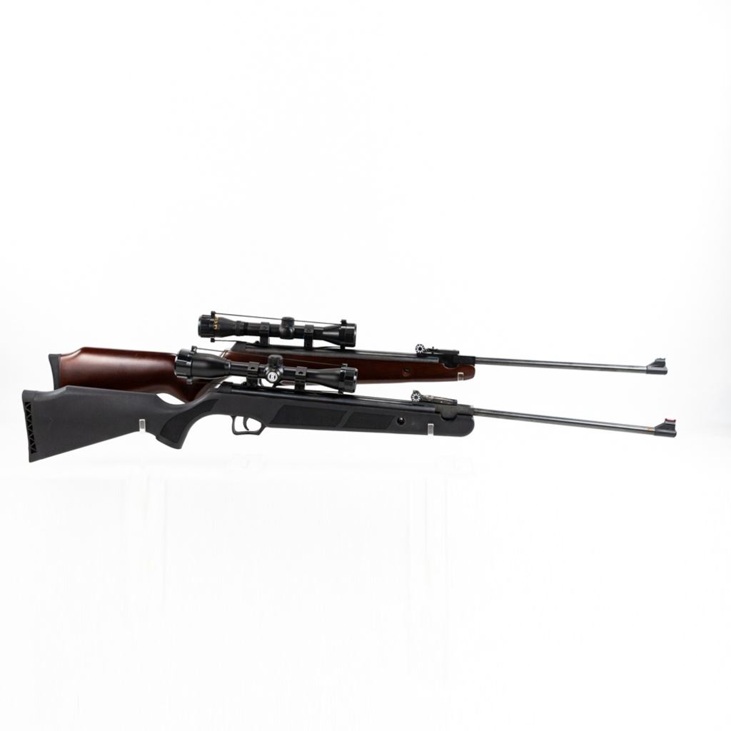 1x synthetic with a Bushnell scope. 1x wood with a Beeman scope AIRGUNS CANNOT BE TESTED FOR FUNCTION!