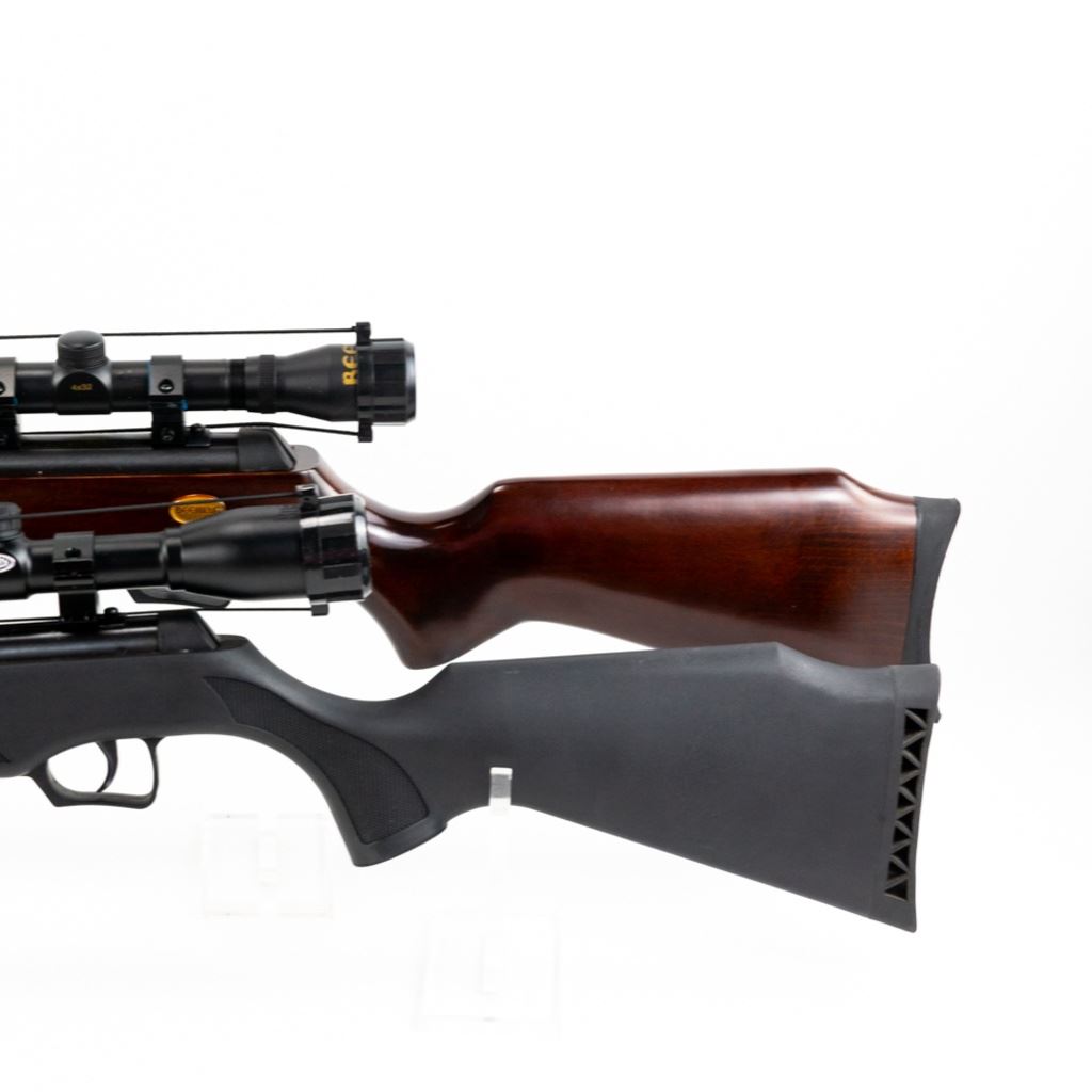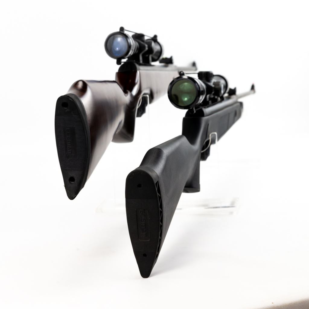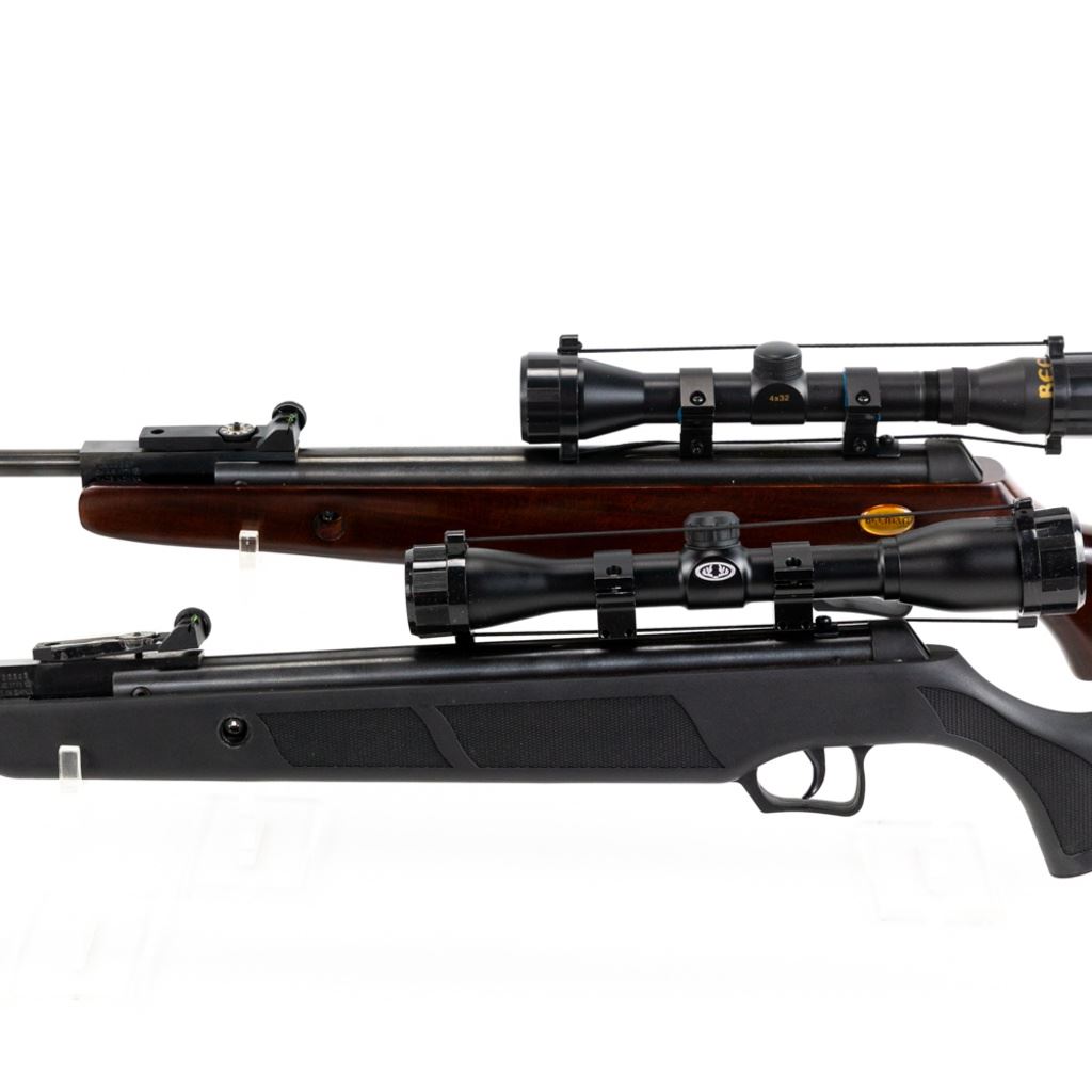 1x synthetic with a Bushnell scope. 1x wood with a Beeman scope AIRGUNS CANNOT BE TESTED FOR FUNCTION!