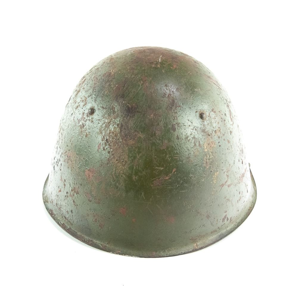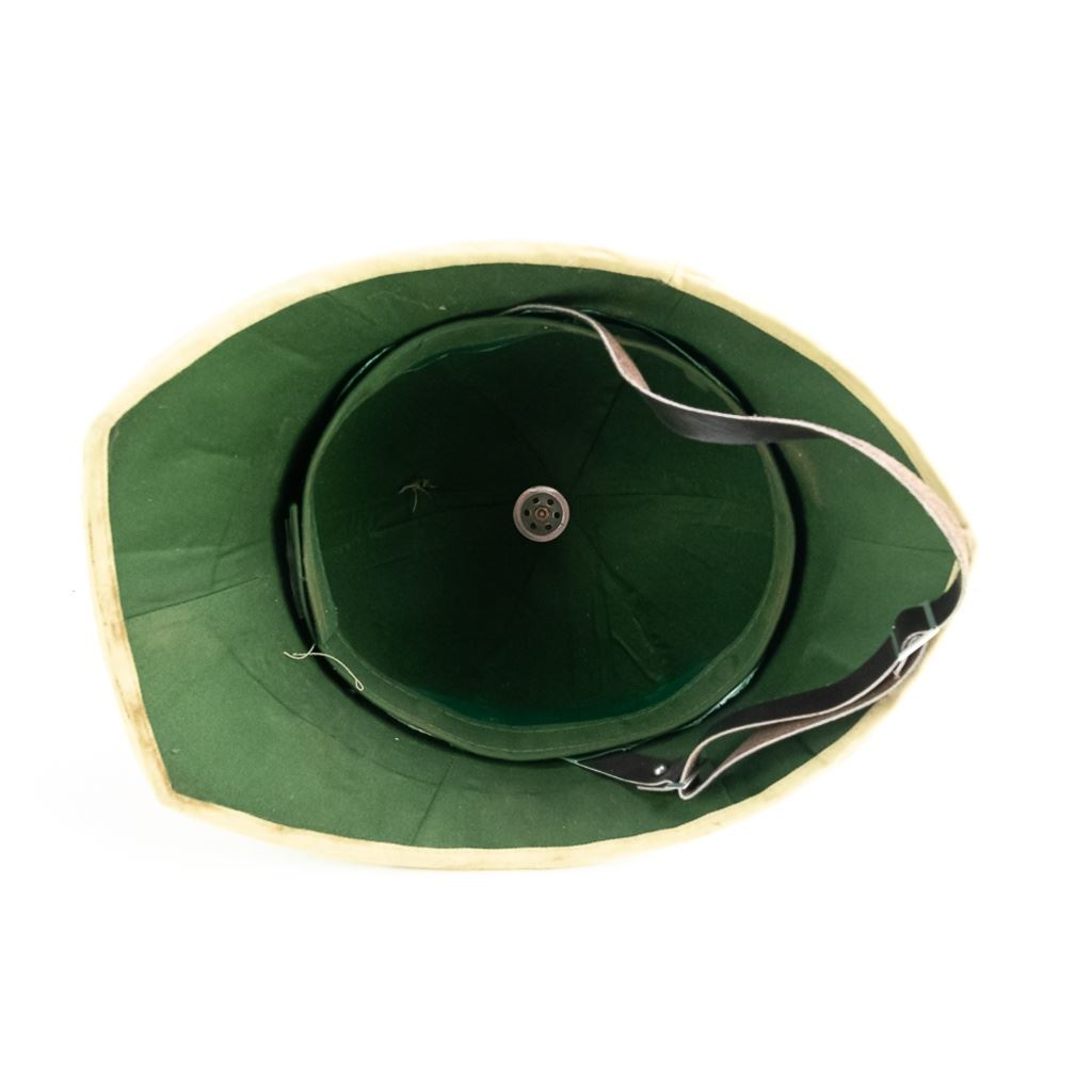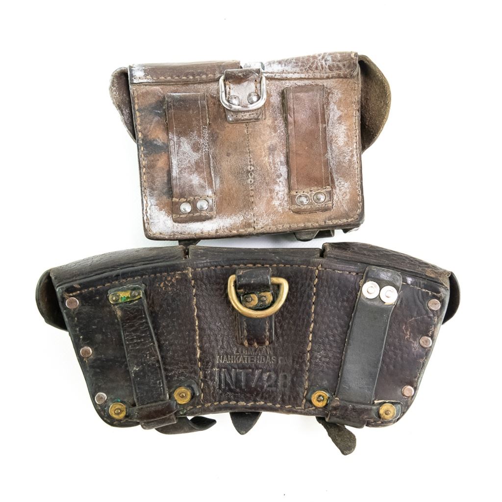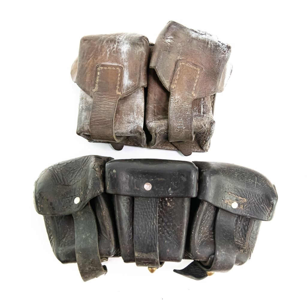 This lot of HH includes SSh-68 helmet shell, unmarked British style Pith helmet, misshapen US WWII Army EM visor hat, WWII British P1903 5 pocket bandoleer, Swedish Mauser M1900 bandoleer, Finnish Mosin Nagant ammo pouch. SKS ammo pouch, US bazooka goggles and US dust goggles marked Levior. It is mix of conditions and came from a smokers home.
