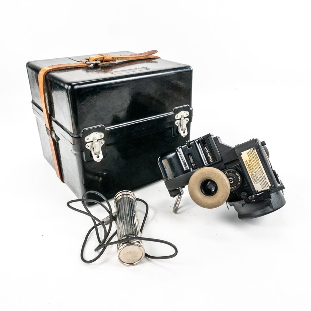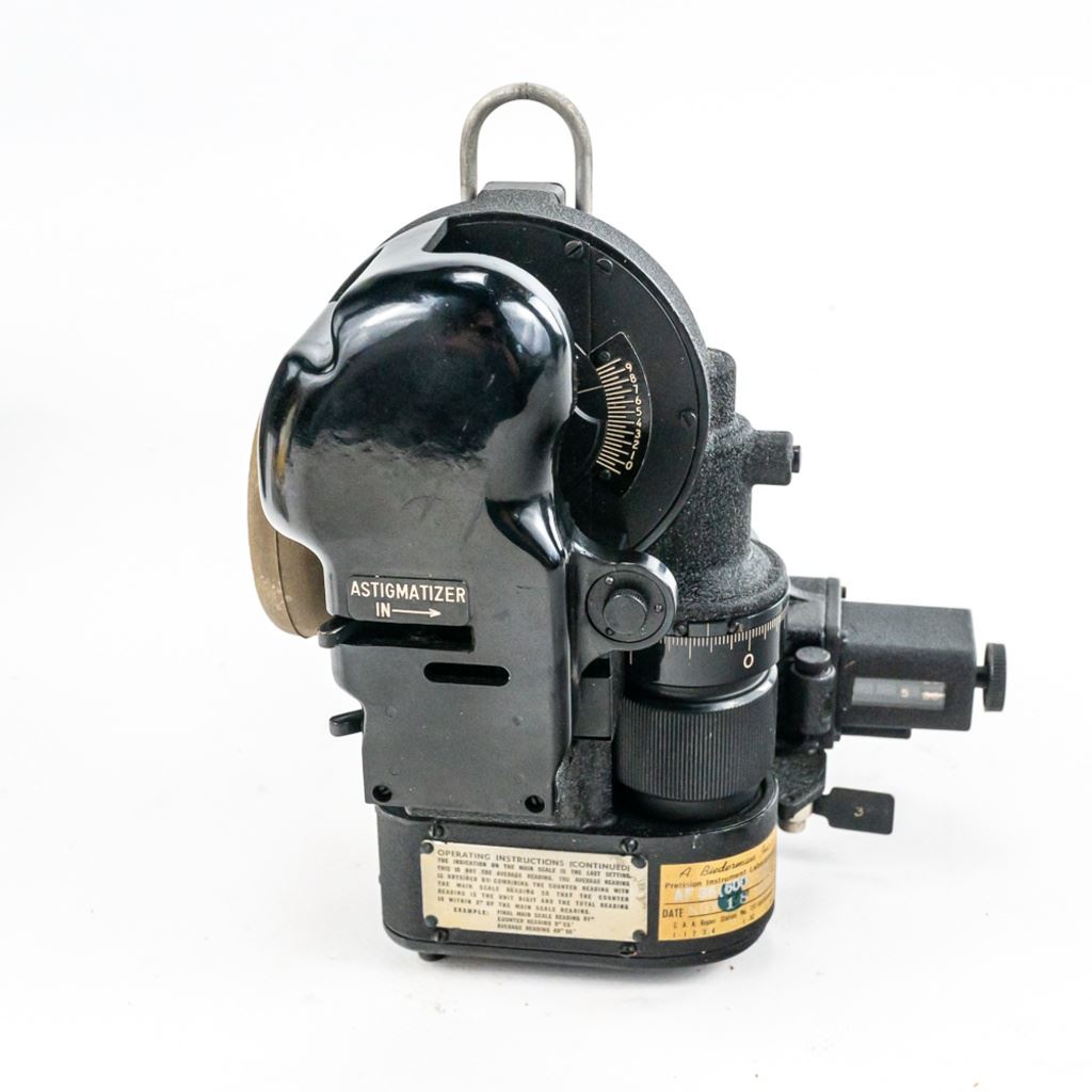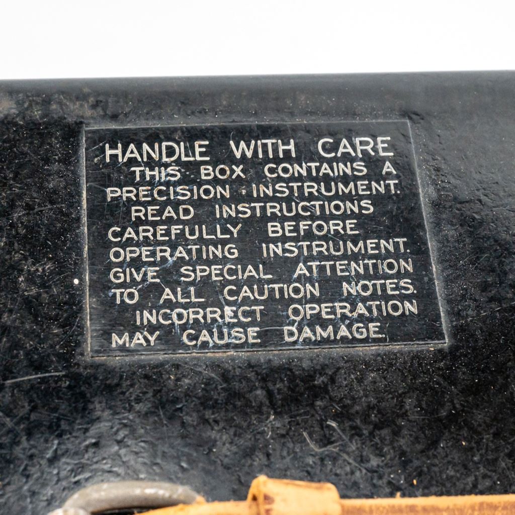 This bubble sextant is from WWII and has a 1958 servicing sticker. It is well marked with spec and instruction tags. Has paper yellow instruction pamphlet, 1942 dated TM for Pilot Weather and modern instructions for the Mark IXA which operated very similarly. Transit box is 10" x10" x10". Box has scratched out serial number and other scratches. This is a good example.