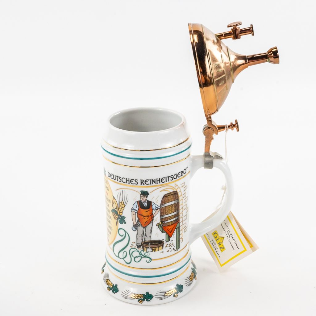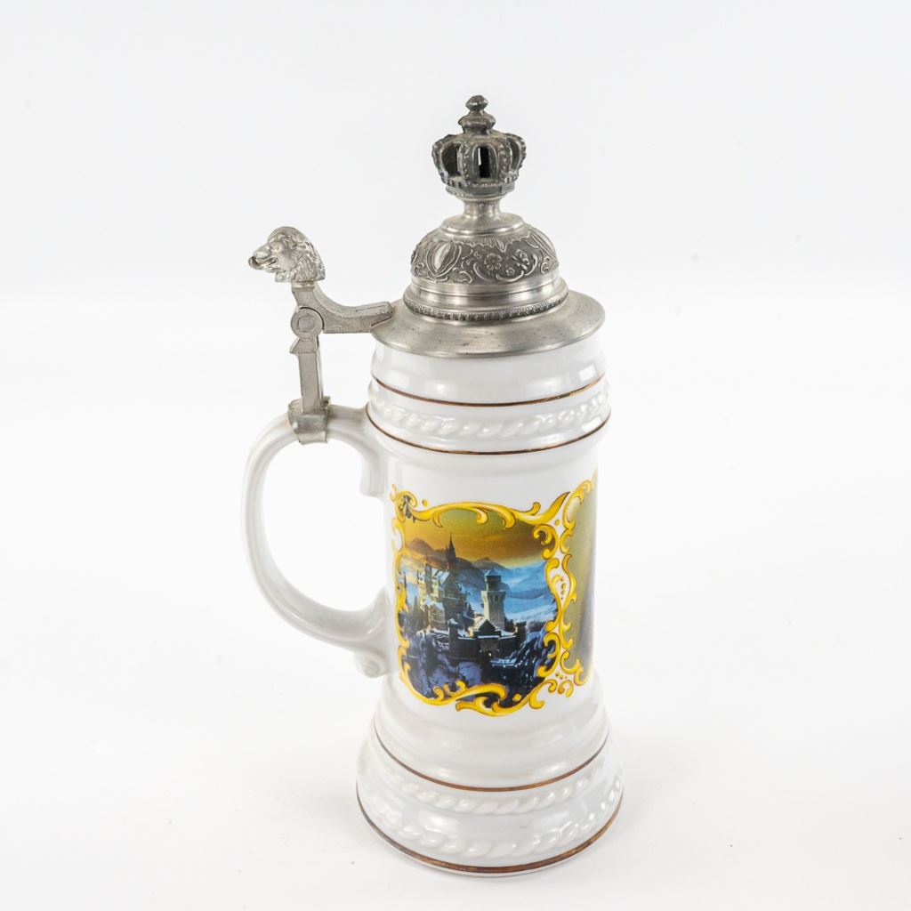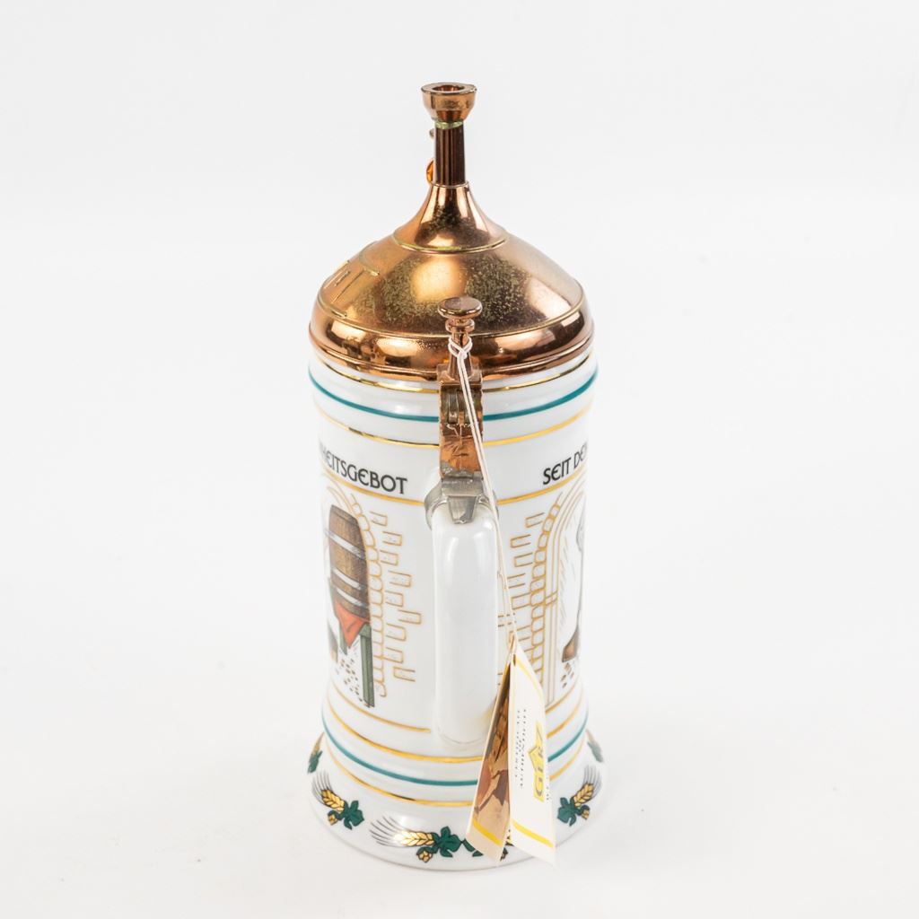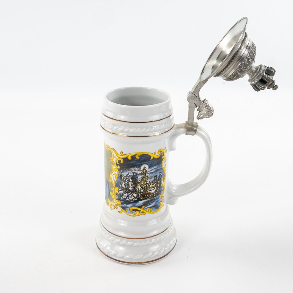 3 steins includes 1) Domex King Ludwig II 150th Anniversary Stein numbered 1437 with original receipt in excellent condition. 2) Gerz Beer Purity Law Stein numbered 747 with original receipt and 3) Thewalt "Sailing Ship" numbered 1344 with factory sting tag. Condition is good but one mast on top is bent.