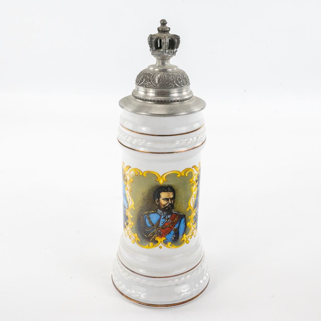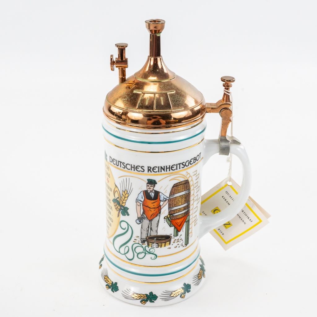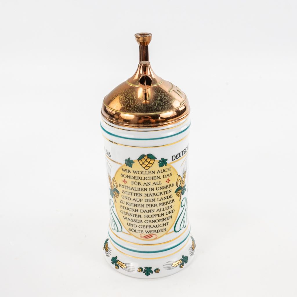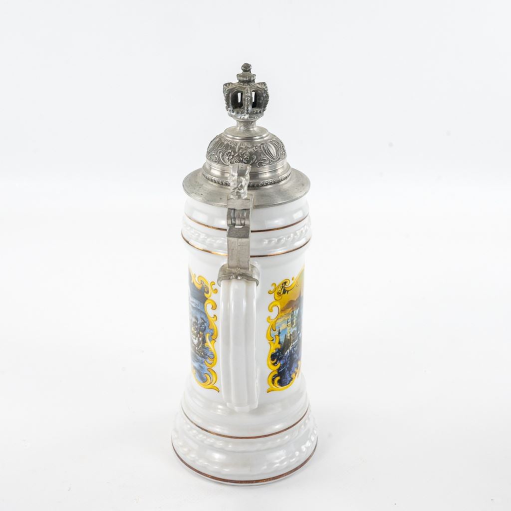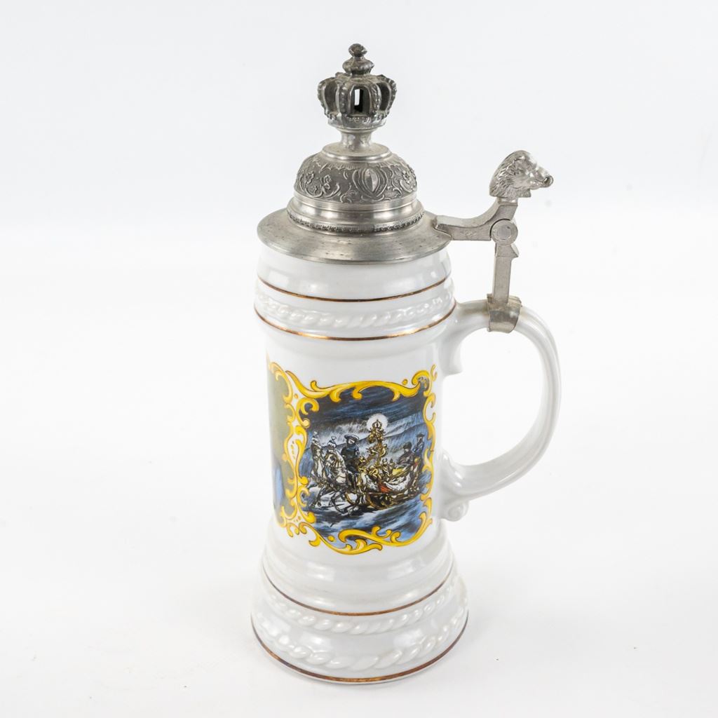 3 steins includes 1) Domex King Ludwig II 150th Anniversary Stein numbered 1437 with original receipt in excellent condition. 2) Gerz Beer Purity Law Stein numbered 747 with original receipt and 3) Thewalt "Sailing Ship" numbered 1344 with factory sting tag. Condition is good but one mast on top is bent.