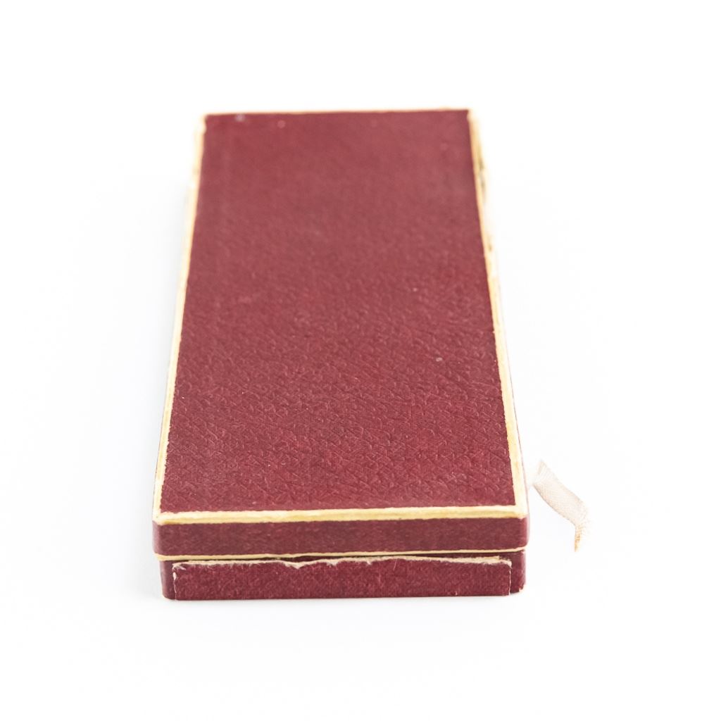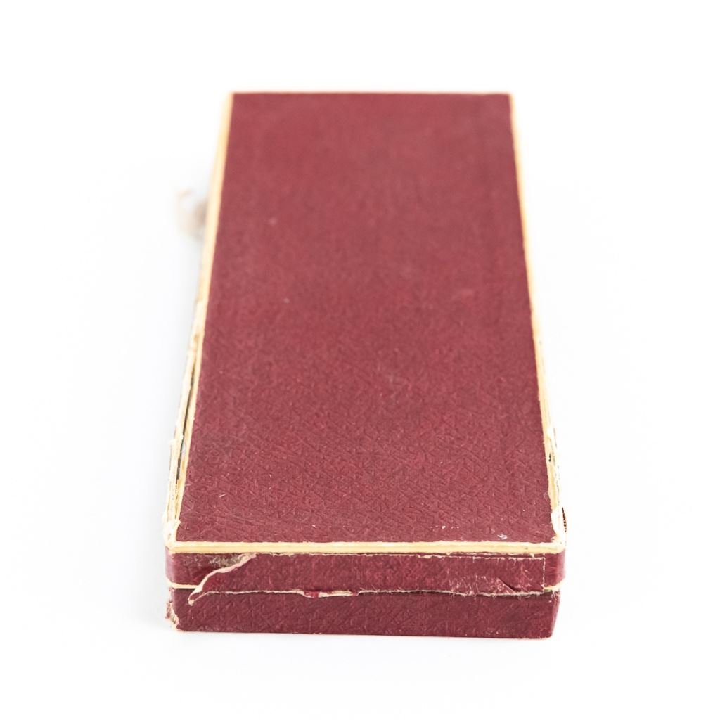 Prague Military School of St. Hubert Graduation medal dated 1932. Multi piece construction and has original carton case. Lids paper hinge to box is broken and carton has some breaks and hard wear.