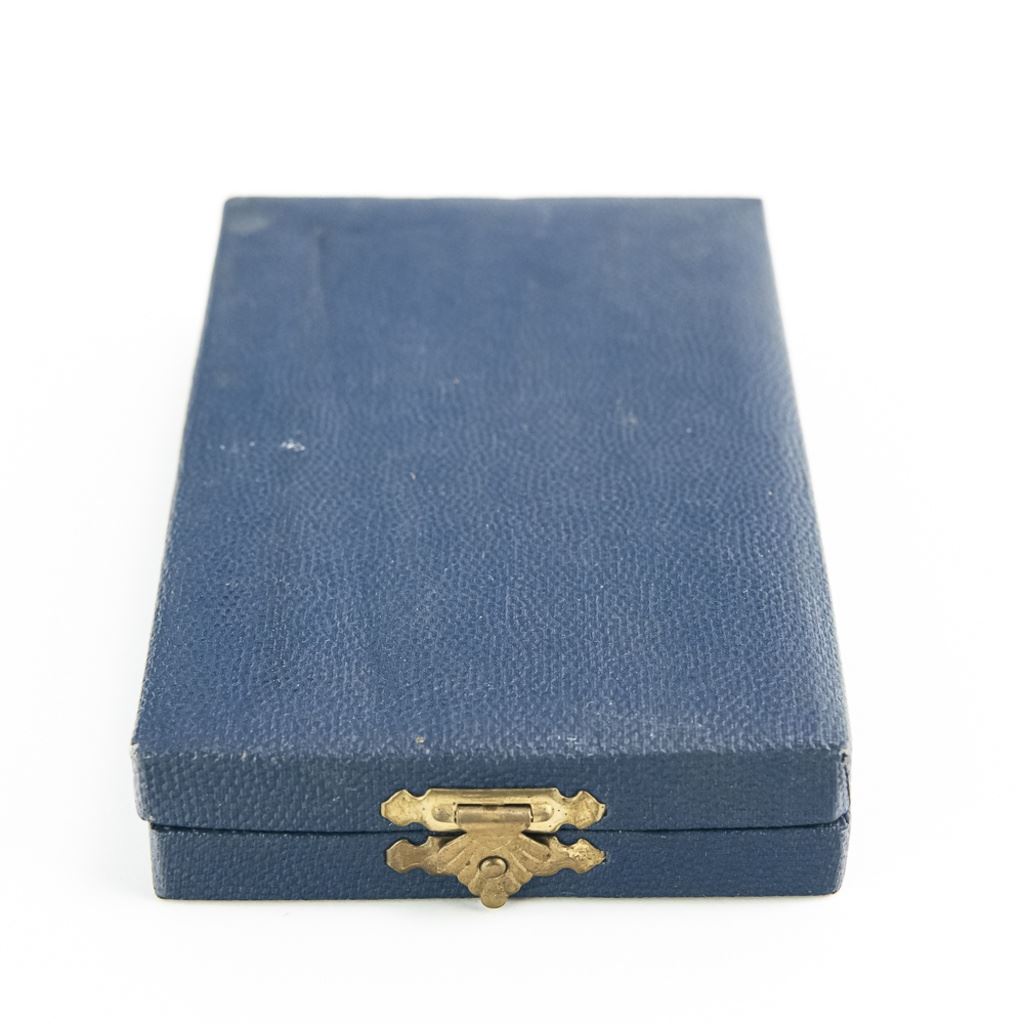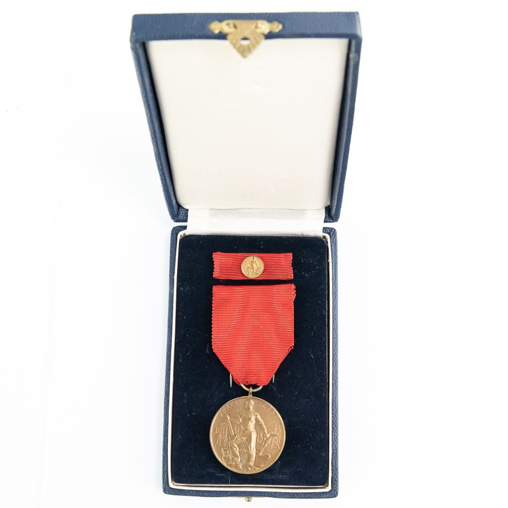 Medal has crisp detail and includes ribbon bar. Rim is not numbered. Medal is in very fine condition and case is in fair-good condition with wear and marks to lid. Scarce award.