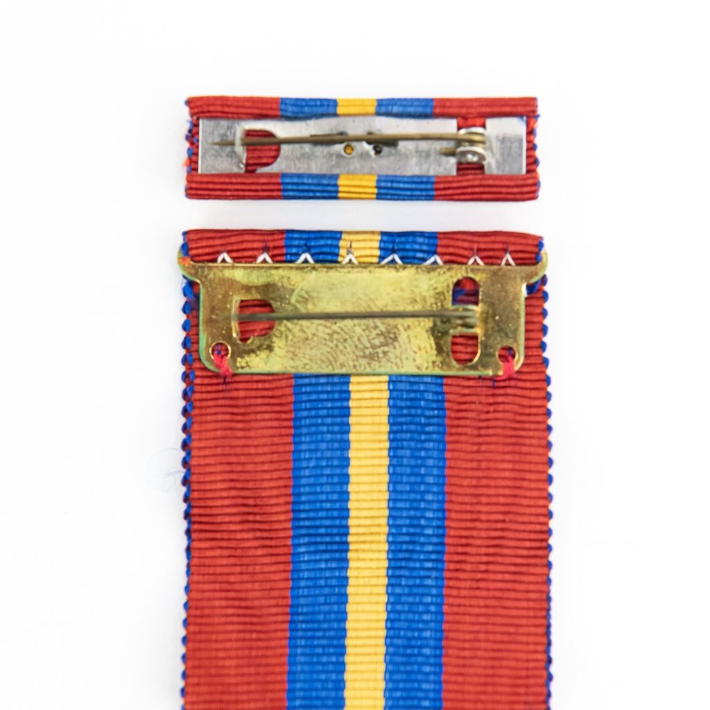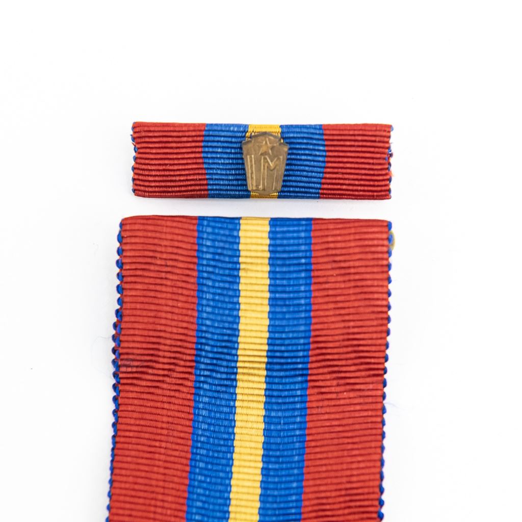 A bronze 2nd class medal with case and ribbon bar. Condition is very good but there is a finger print stain on back of brooch. It does not distract. The case is in fair to good condition with some wear and peeling of leatherette on hinge area.