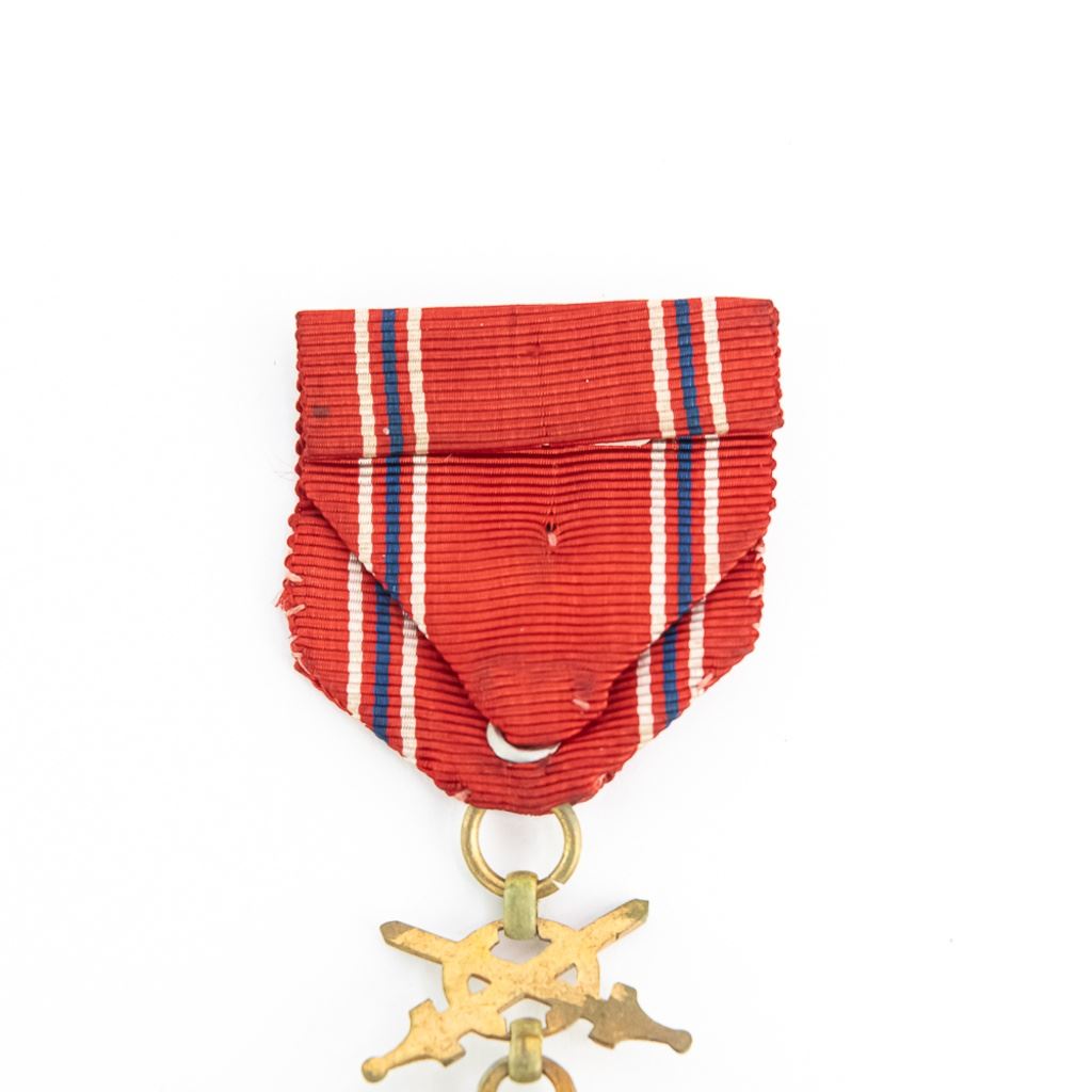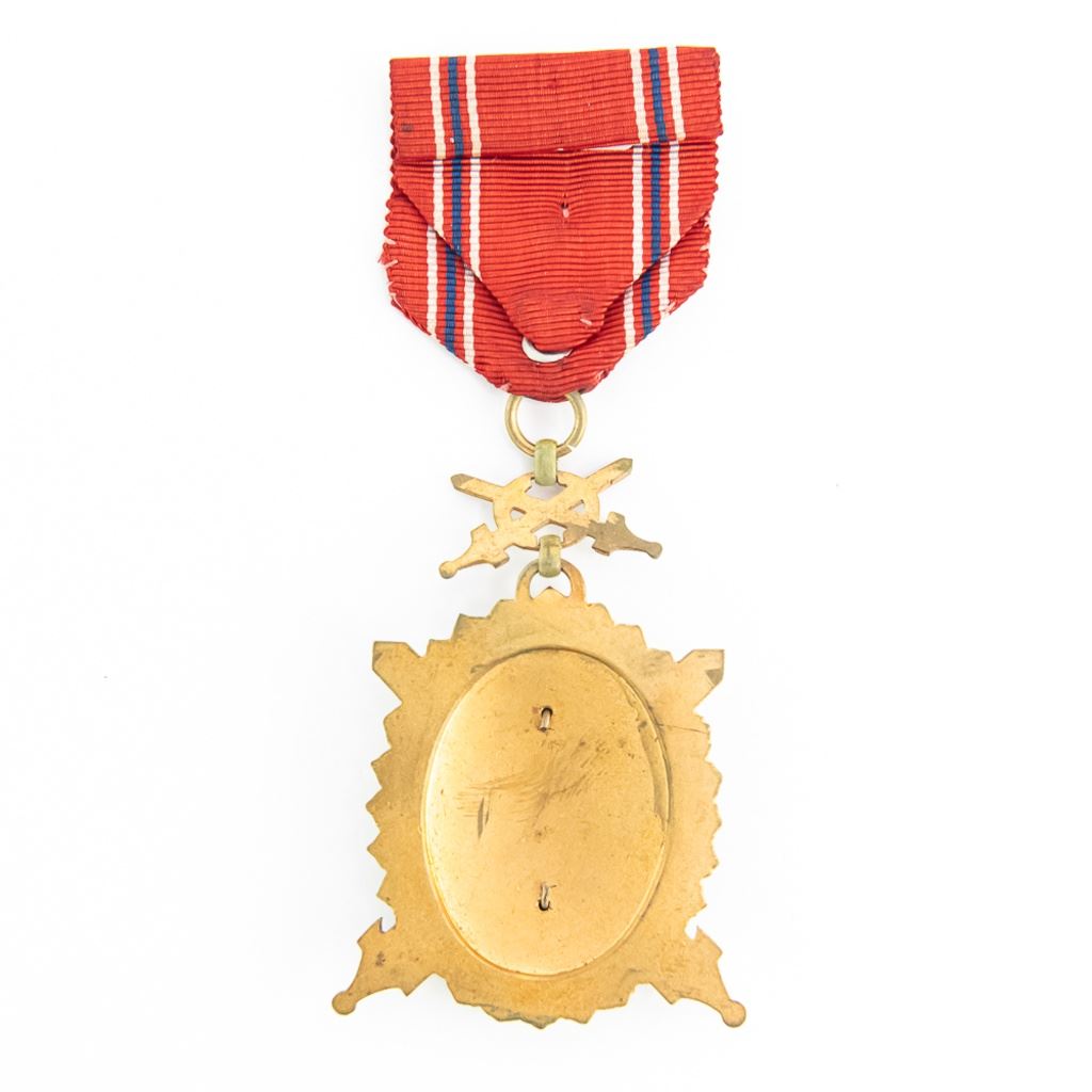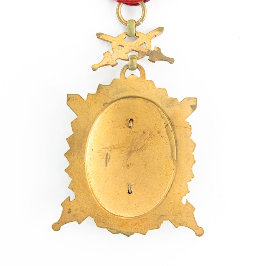 Medal is gold with no crown and with swords. Shows wear and age. Very scarce order.