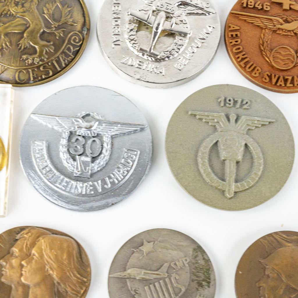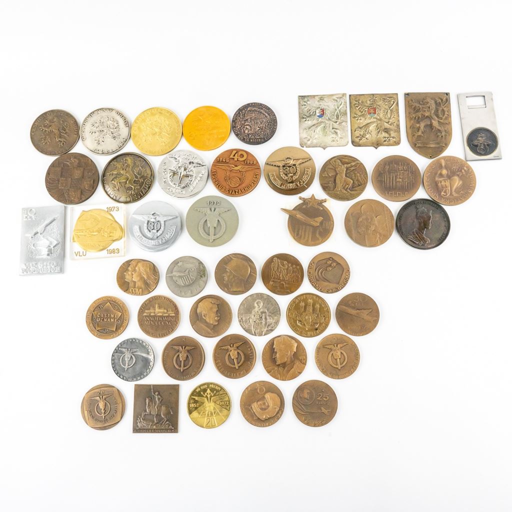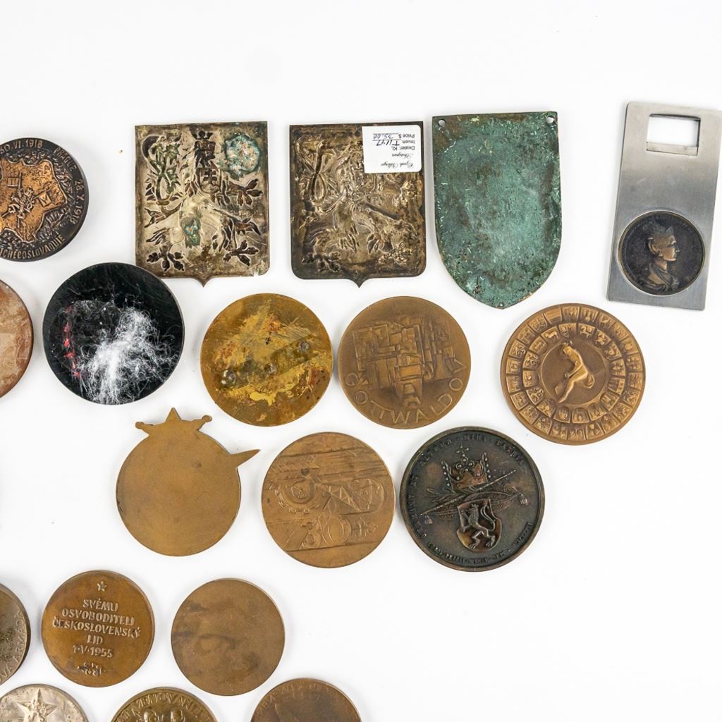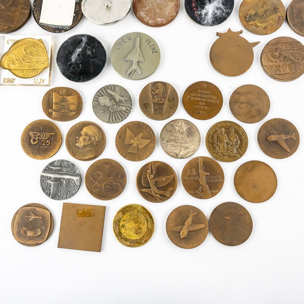 A very fine collection of 45 Czech table medals. Most are bronze. They span from the 1930s to 1980s. Some are Air Force, WWII commemoration and communist achievement. 3 are plaque fronts and one table medal has been mounted on a bottle opener. Many years of collecting offered here!