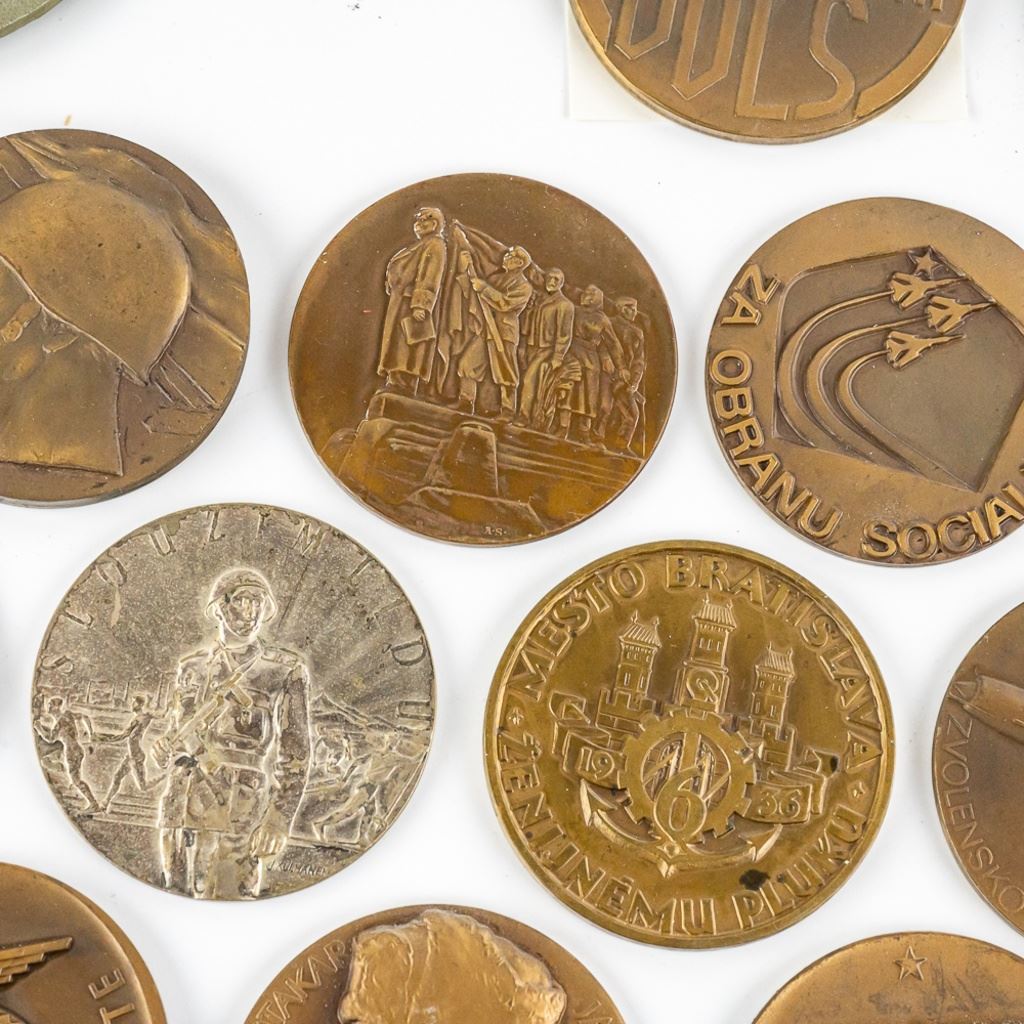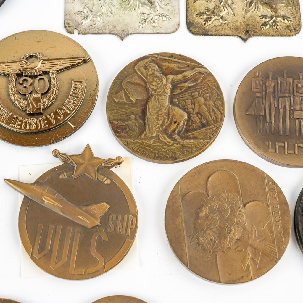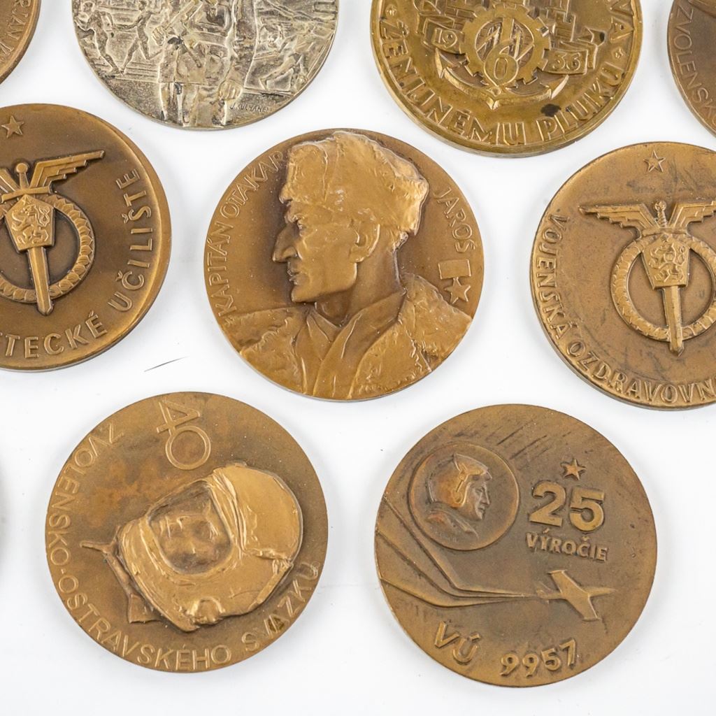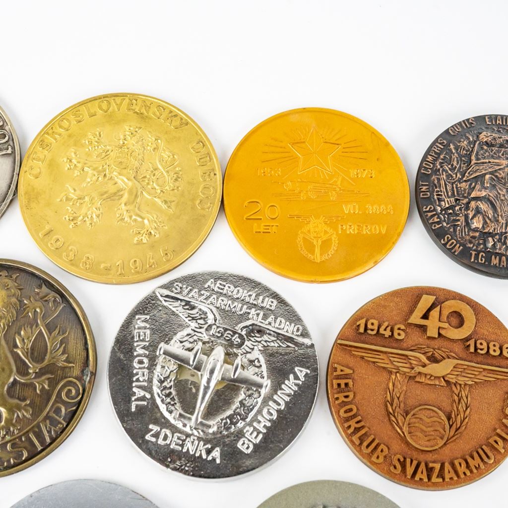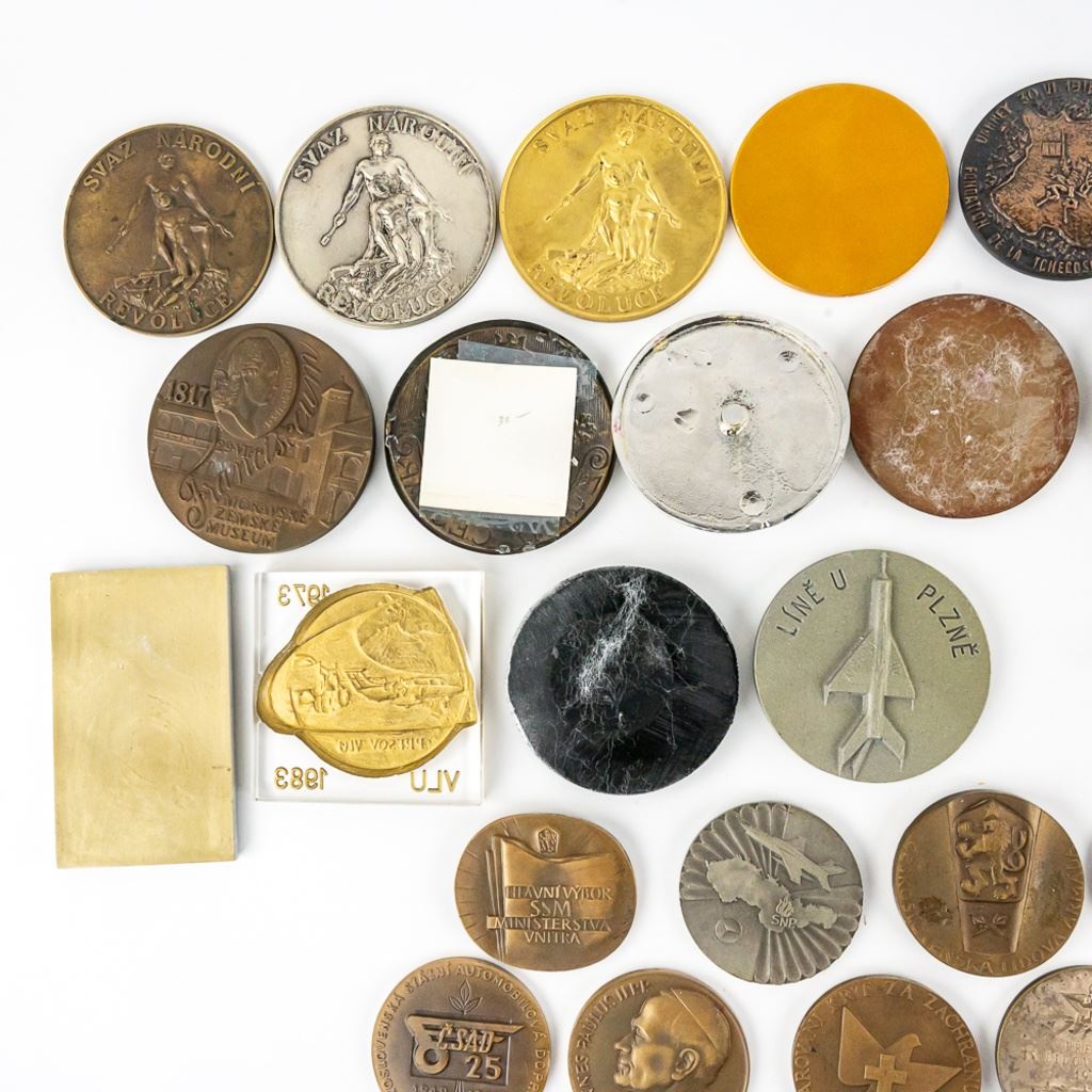 A very fine collection of 45 Czech table medals. Most are bronze. They span from the 1930s to 1980s. Some are Air Force, WWII commemoration and communist achievement. 3 are plaque fronts and one table medal has been mounted on a bottle opener. Many years of collecting offered here!
