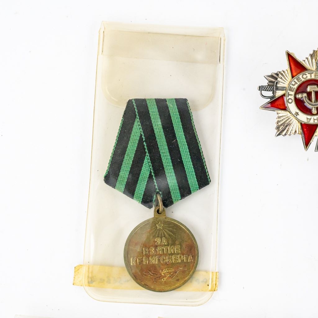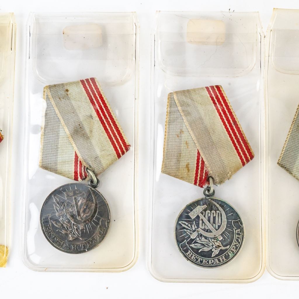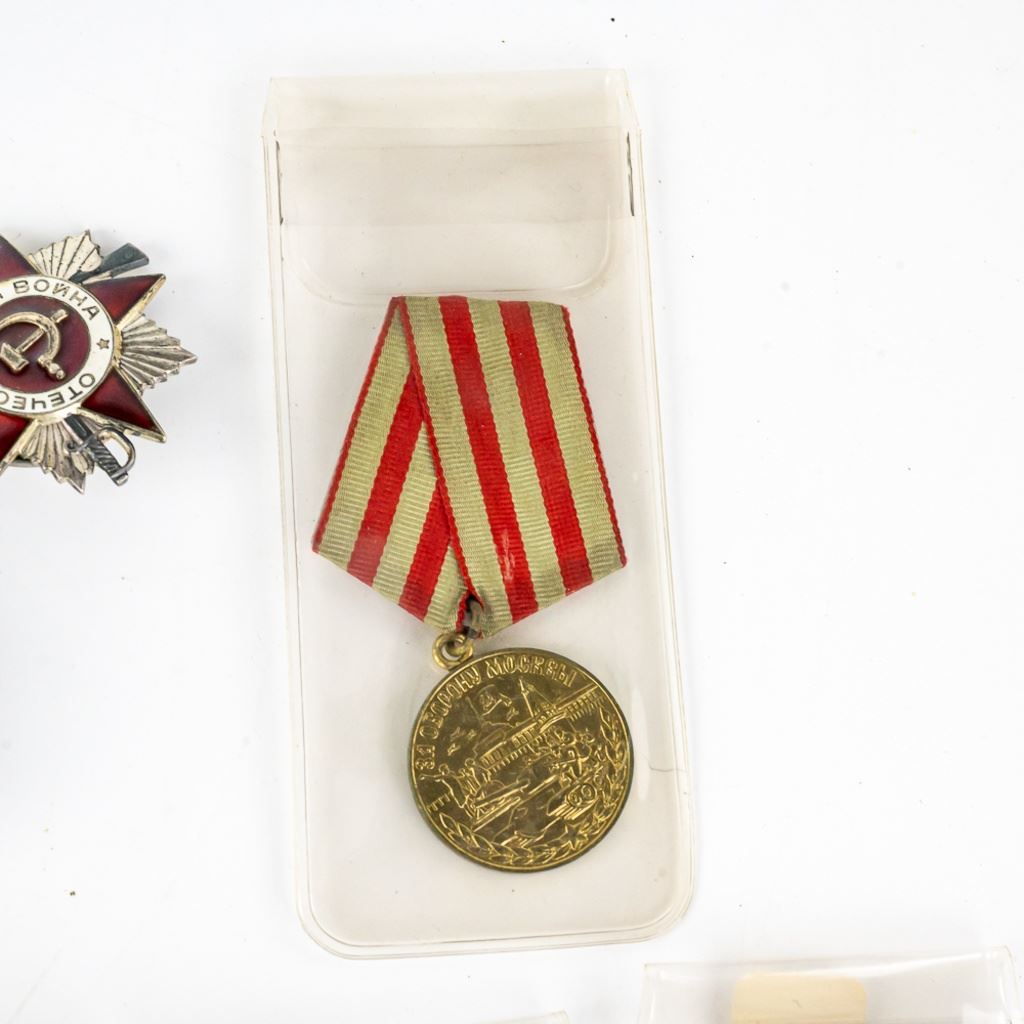 Includes 9 medals and 5 Patriotic War 2nd Class badges numbered 5967031, 1692155, 2974941, 3132887, 1201532. A great lot for collector or dealer.