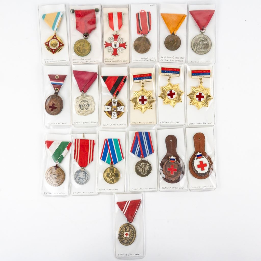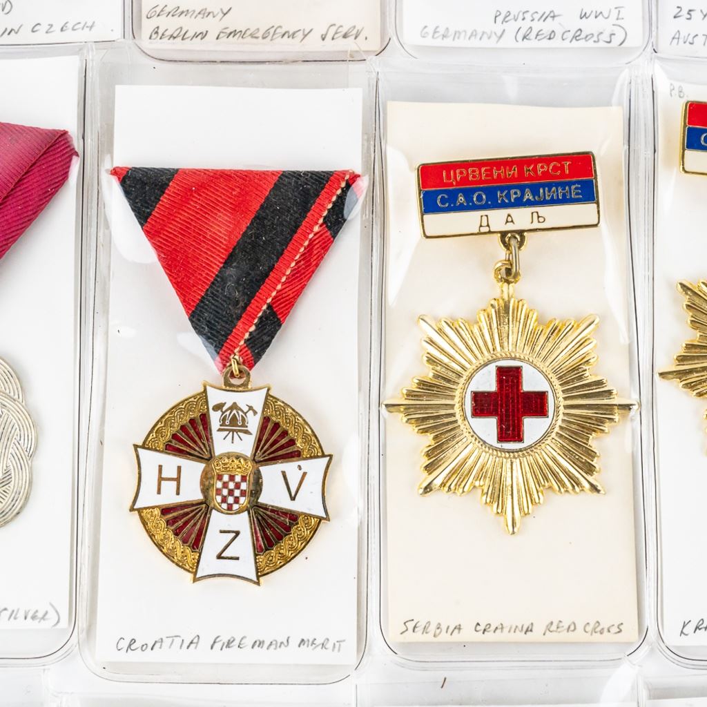 16 medals include Red Cross and Fire service for Slovenia, Russia, Japan Austria, Croatia, Serbia, WWI Germany, Poland and much more.