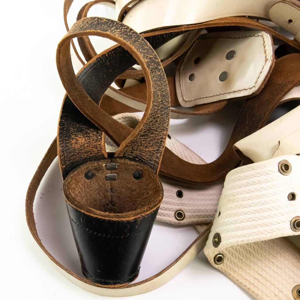 -3x Double Strap Leather Parade Flag Carriers, 2x white & 1x black, shows wear