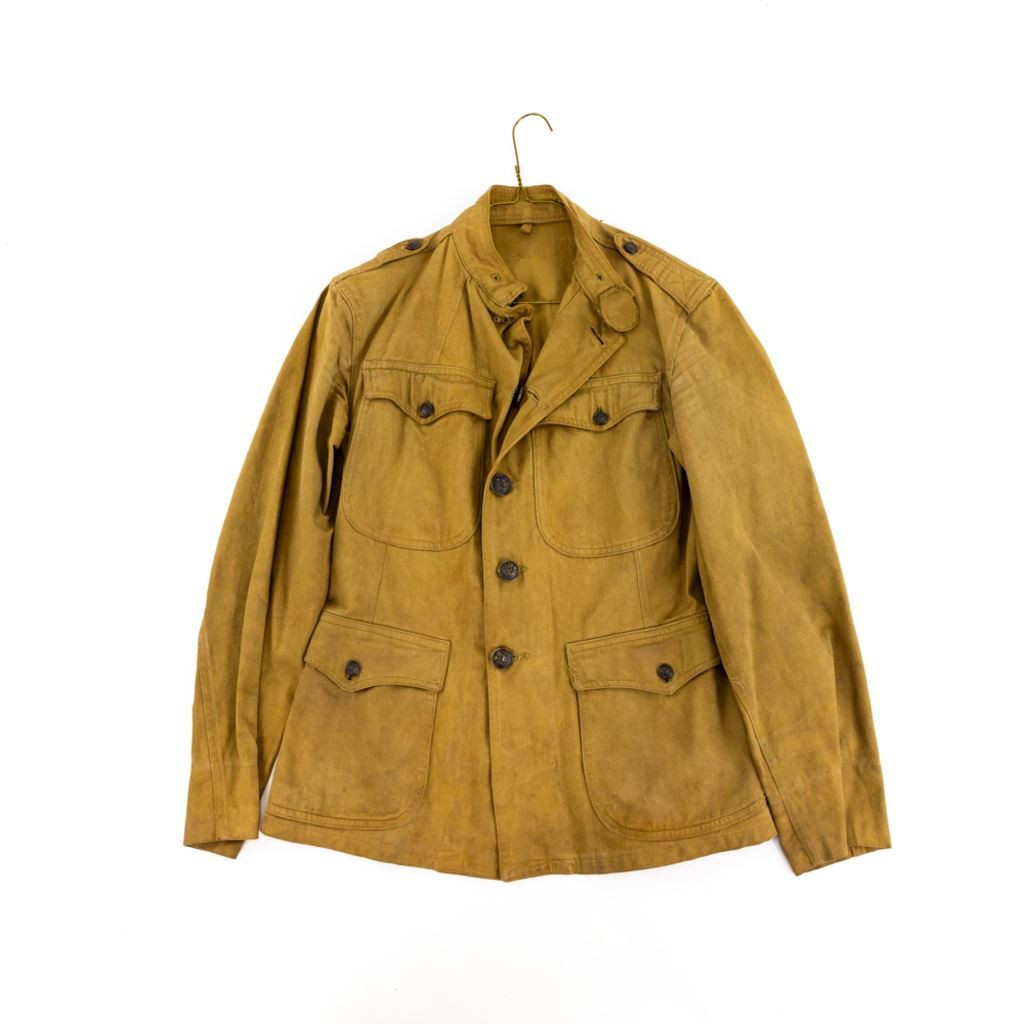 Lot of shako, jacket, trousers, sword knot and false collar.. This is the strange case of an Austrian Officer Shako made in Lalbach, Austria will an American Eagle and cap badge with "VSD". The shako is very well made and well marked on the inside. The exterior is an Austrian Infantry Officer design. The uniform is late 19th-Early 20th Century dark blue frock coat with silver US eagle buttons. The trousers are very old USMC dress Blue with washed out spec tag and some moth spots. The red collar was added and Austro-Hungarian Army rank celluloid stars are sewn on. Has Armstrong Uniform Company of Chicago label with size and owner's name. Comes with Austrian sword knot with no strap and broken celluloid false collar. The estate's family was from present day Slovenia in the old country. Shako shows use and some wear. The jacket/coat is in good condition with no mothing. The Austrian stars are loose and cracked. This is a surprising uniform and shako group.