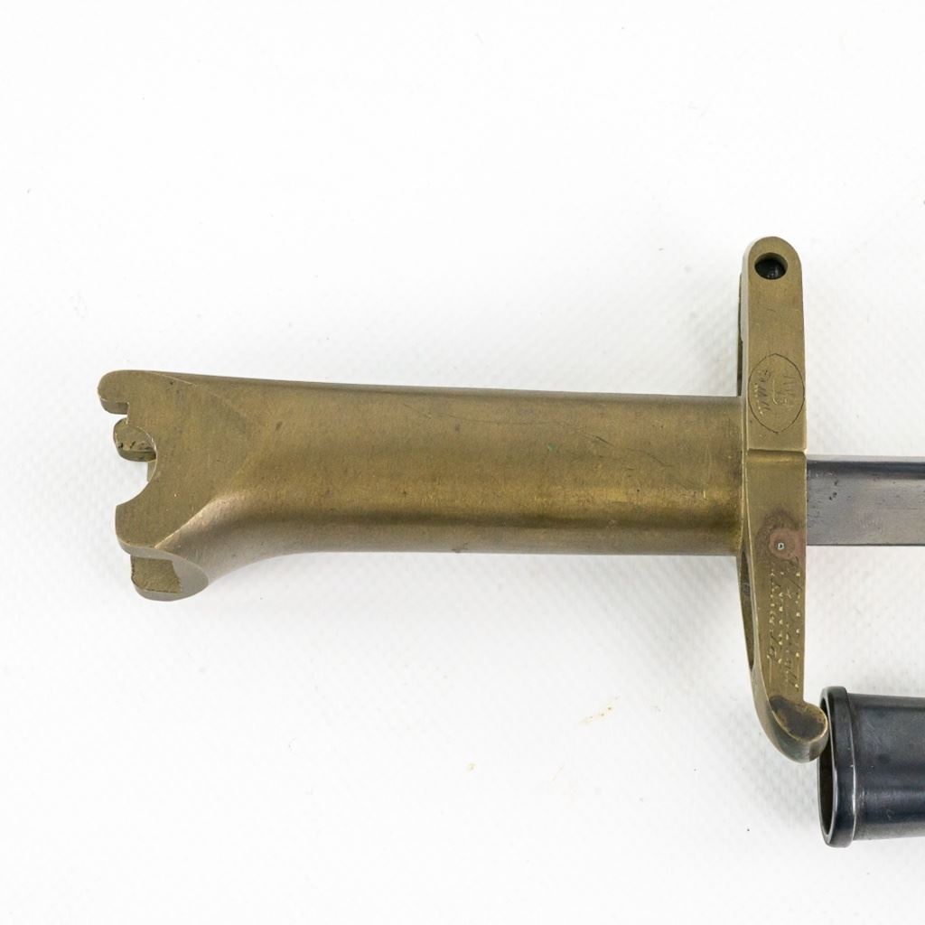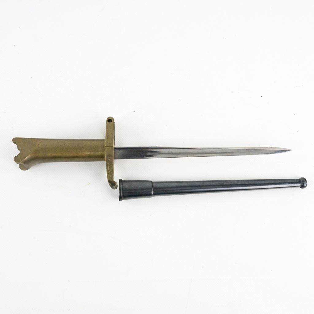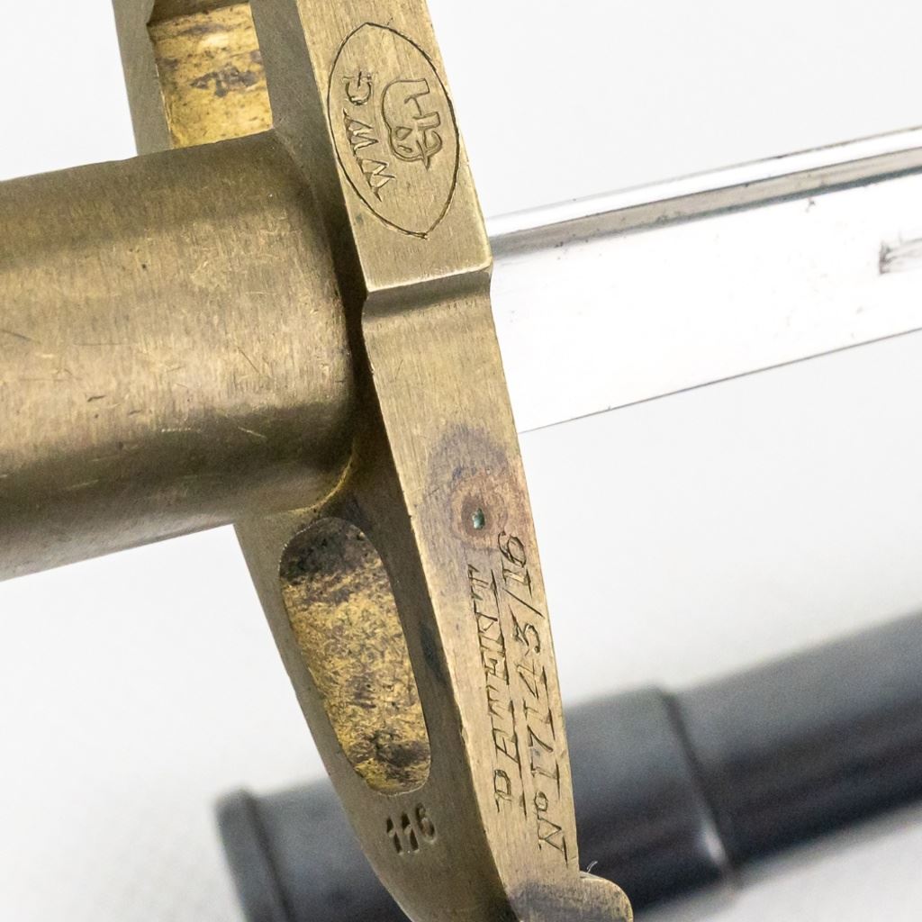 Reserve has been removed! Made by W.W. Greener during WW I to fit on a Webley .455 Mark VI pistol with the intention of leaving an officer in the trenches with a weapon after emptying his gun. It was made from a French Gras bayonet blade and a cast brass handle. This is an original piece and numbered to a pistol. It has been compared to known examples and is not made from parts or a replica. It's estimated that there were less than 100 made and it's extremely rare to find one in this excellent condition.