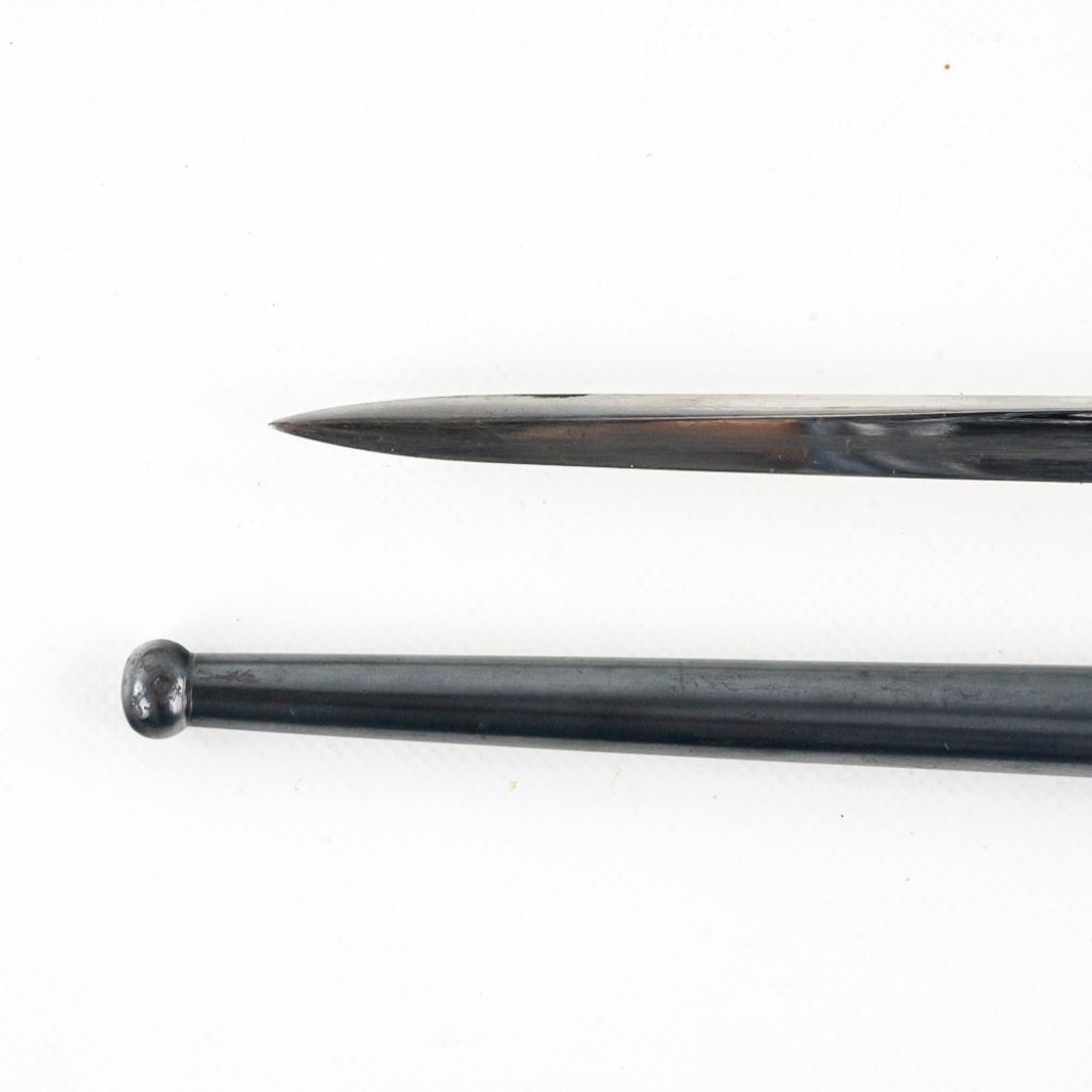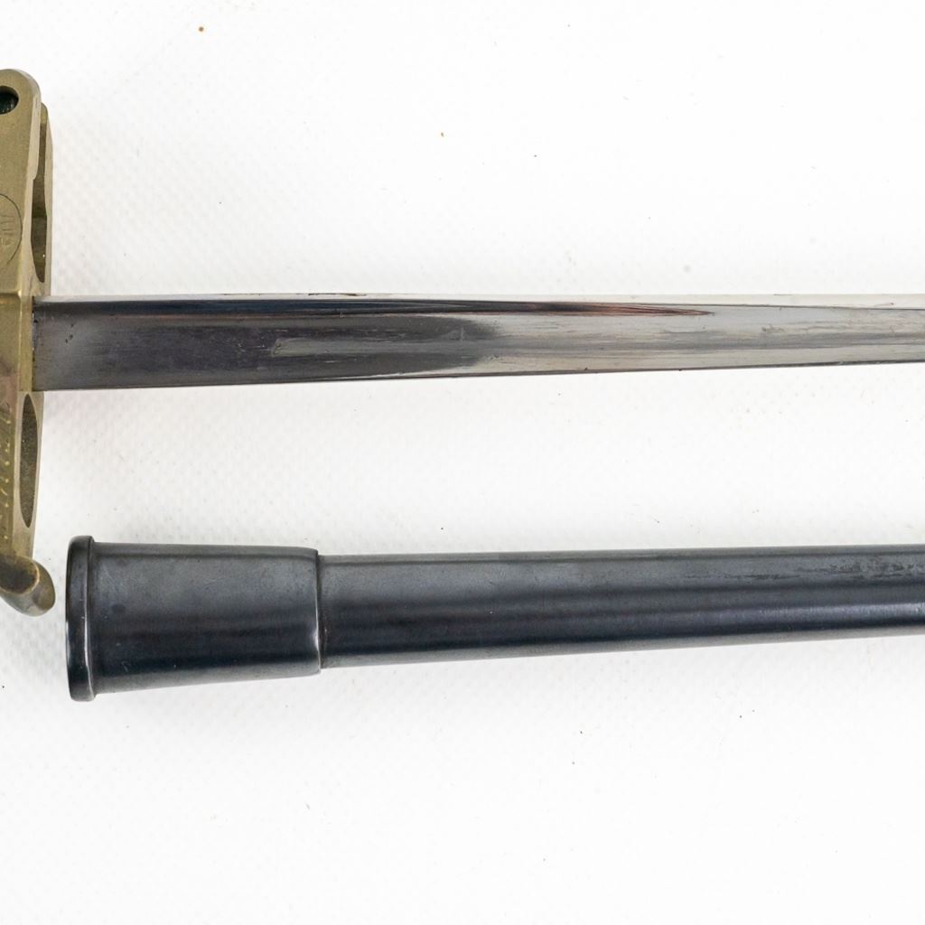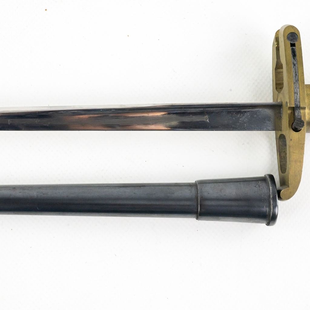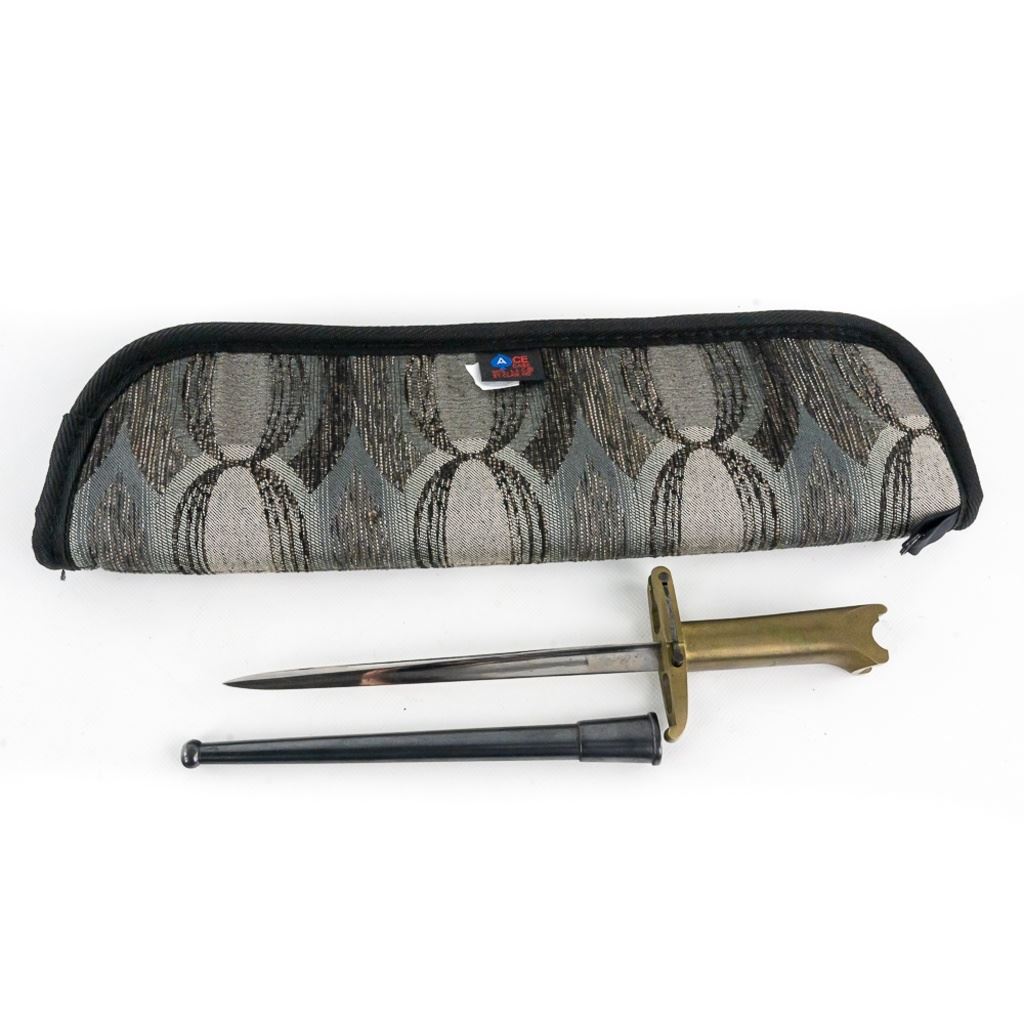 Reserve has been removed! Made by W.W. Greener during WW I to fit on a Webley .455 Mark VI pistol with the intention of leaving an officer in the trenches with a weapon after emptying his gun. It was made from a French Gras bayonet blade and a cast brass handle. This is an original piece and numbered to a pistol. It has been compared to known examples and is not made from parts or a replica. It's estimated that there were less than 100 made and it's extremely rare to find one in this excellent condition.