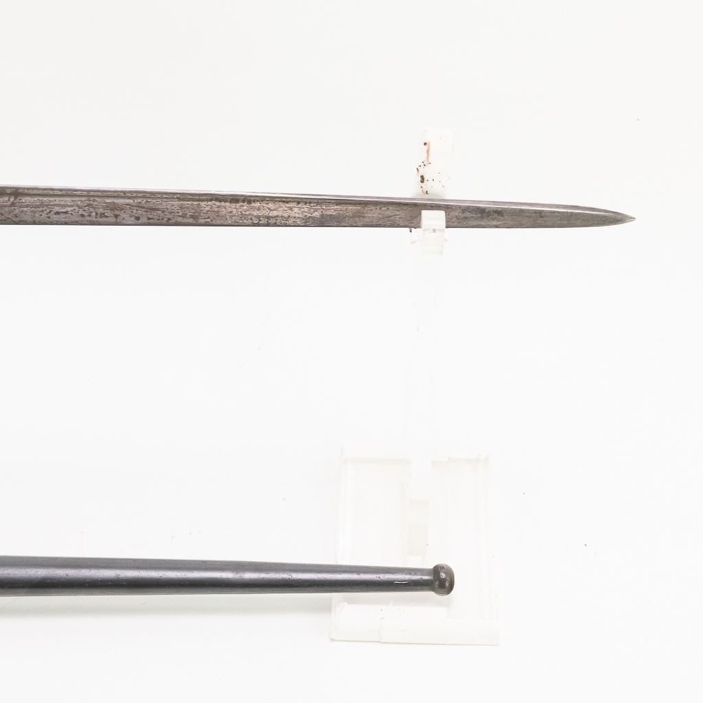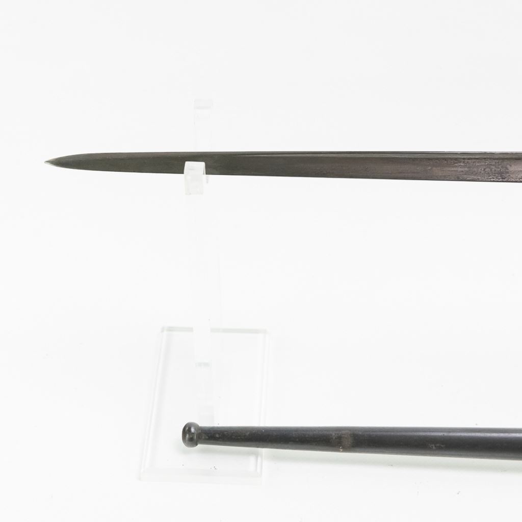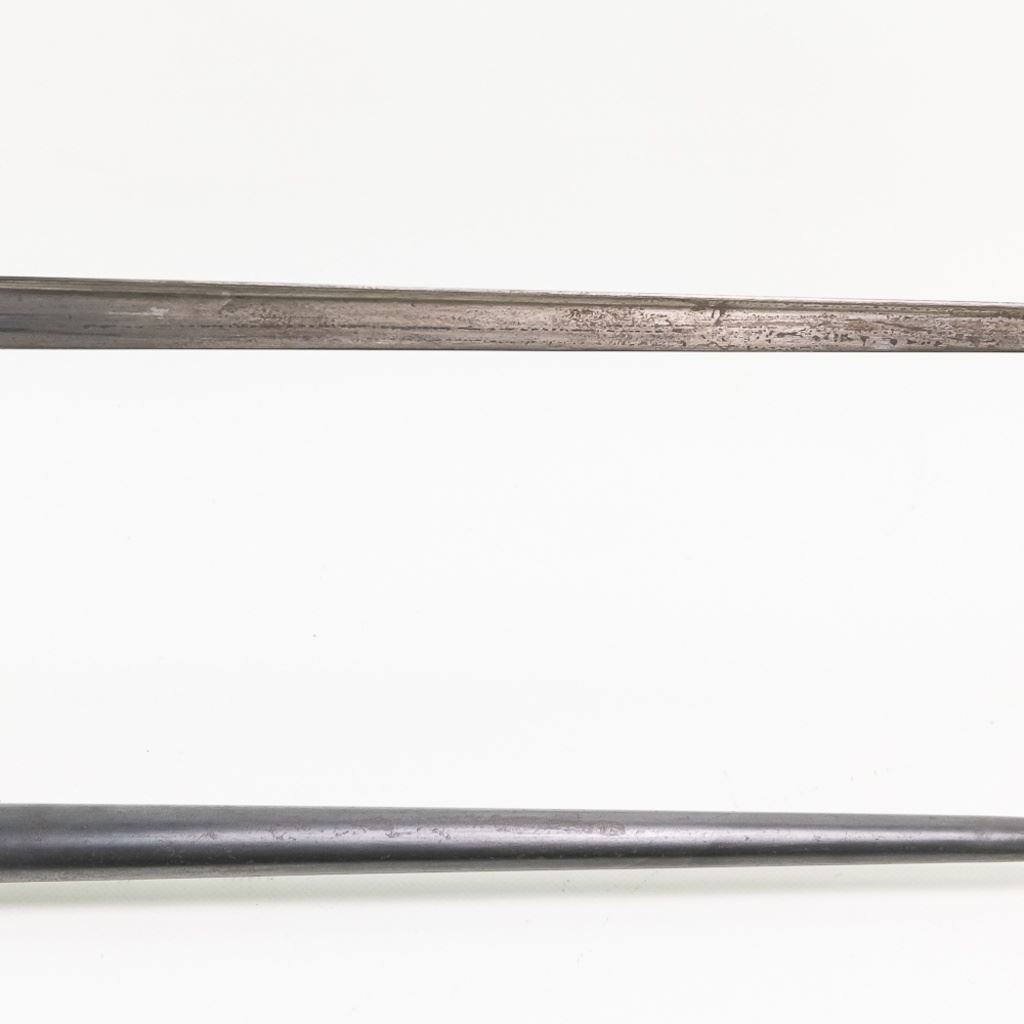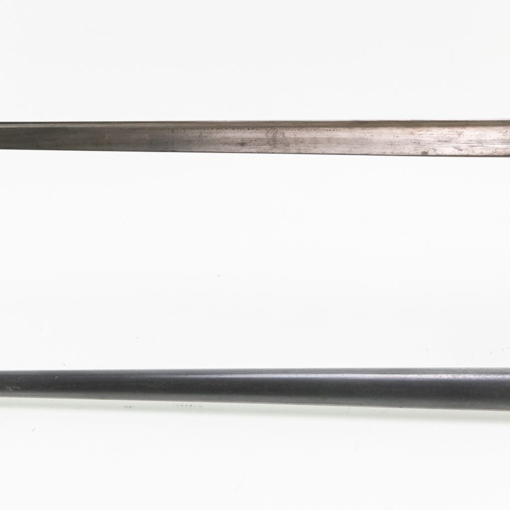 Serial # F 37640. 21 1/2 " bright blade with no nicks. Overall nice shape with better than 90% of bluing on the scabbard, only one small dent on the lower end, it is missing the frog loop.
