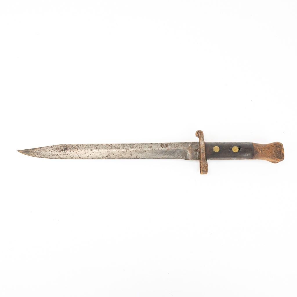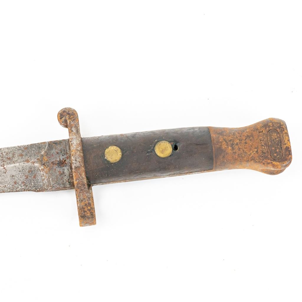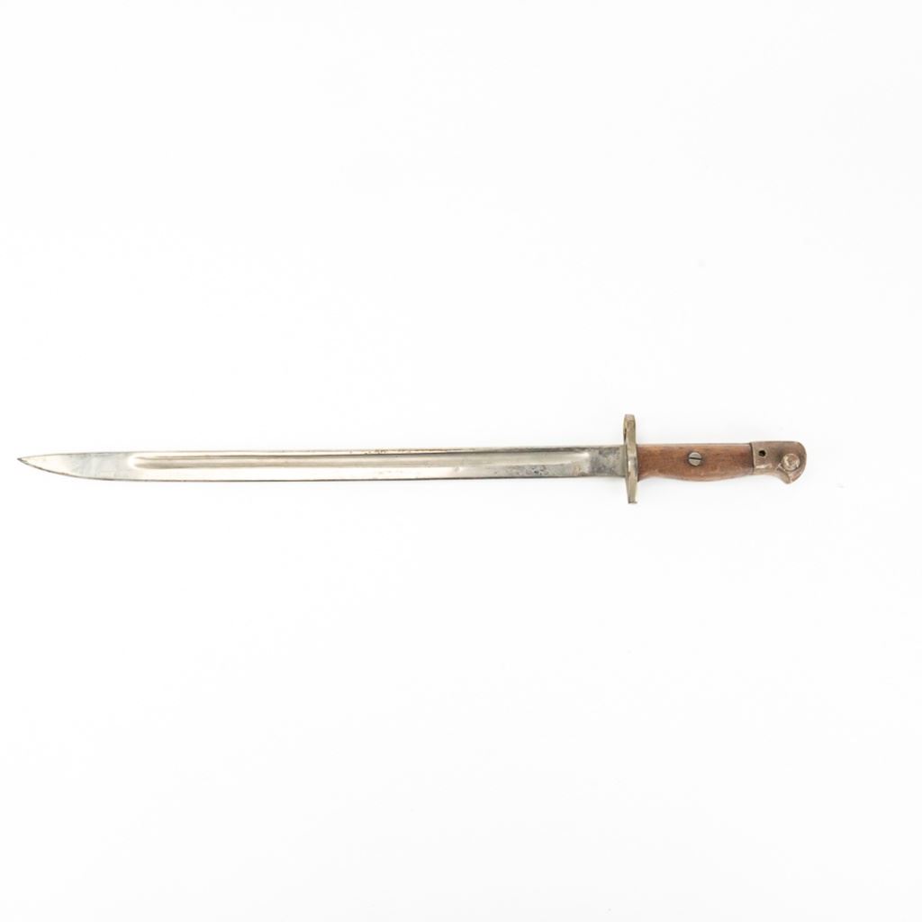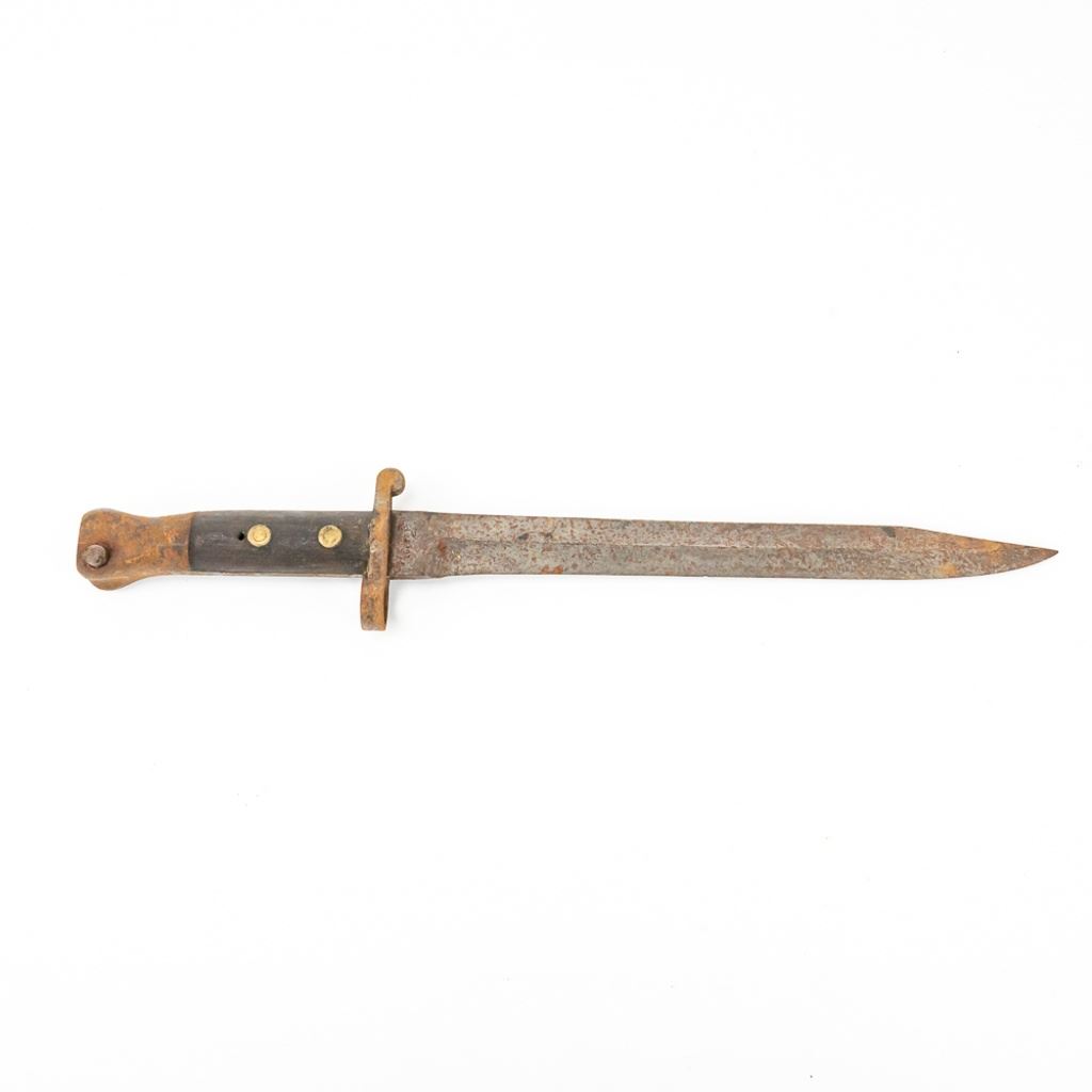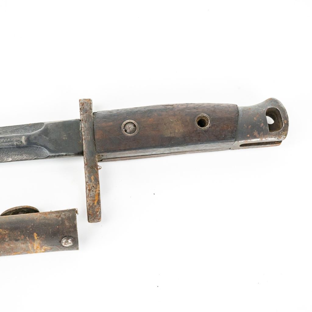 8 bayonets includes: Belgium M1916 bayonet missing lug button, French Gras Bayonet dated 1878 with unnumbered scabbard and carved name on handle, British Martini-Henry bayonet 25" with 21.25" blade. 2 British 1907 bayonets, Wilkinson and Anderson, one with US made scabbard, 2 British No. 4 Mk II spike bayonets and 1 British M1888 Lee-Metford and Long Lee-Enfield rifle bayonet with many markings. All of these bayonets are covered with surface rust from poor storage. They all need oil and a good cloth.