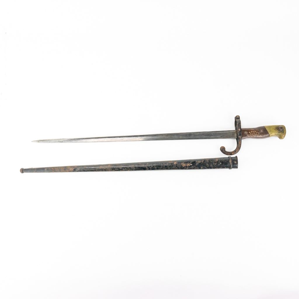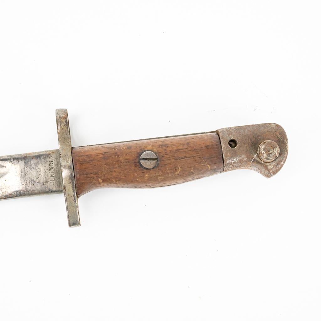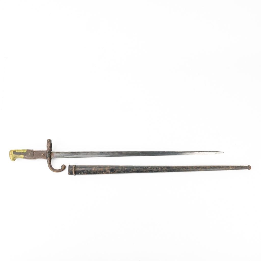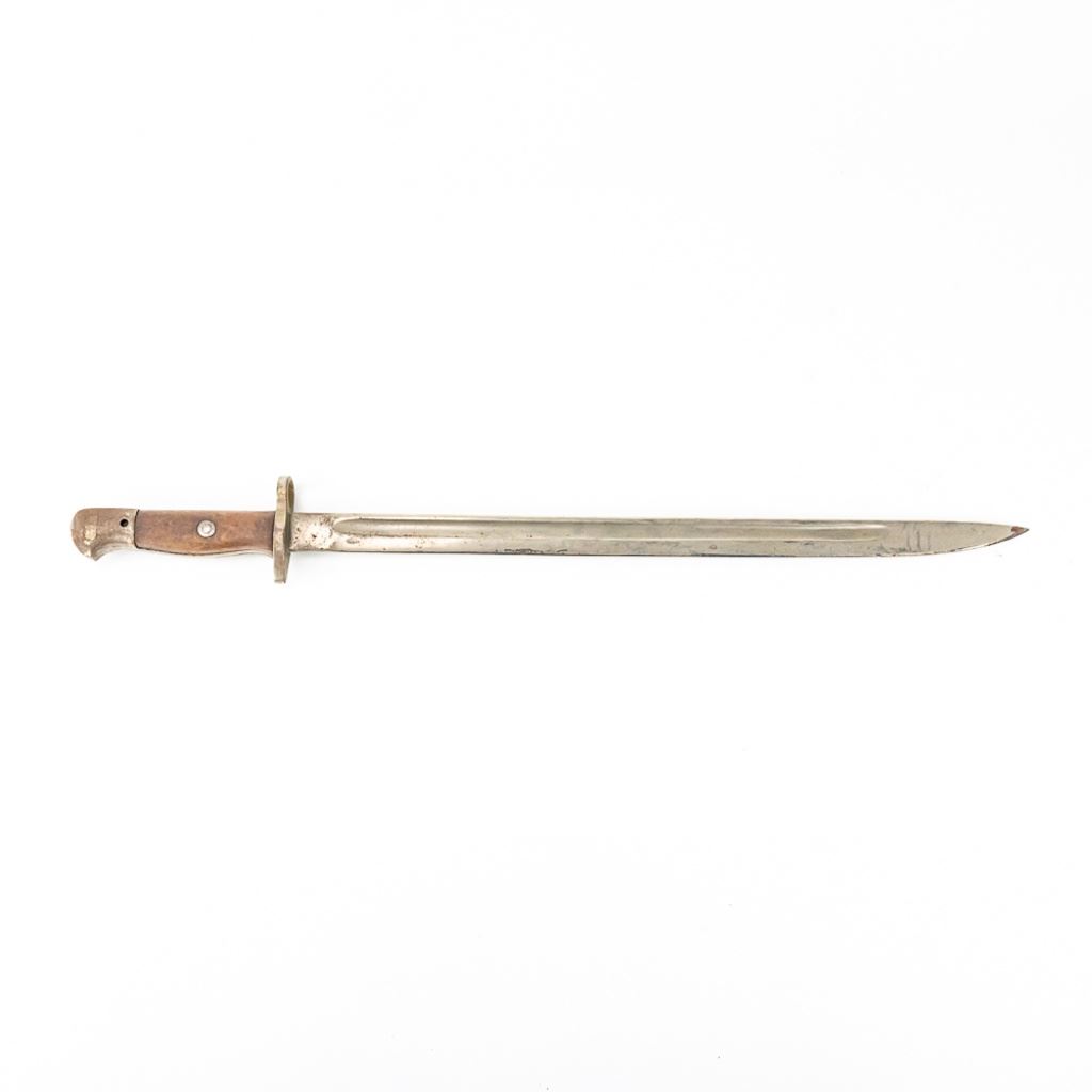 8 bayonets includes: Belgium M1916 bayonet missing lug button, French Gras Bayonet dated 1878 with unnumbered scabbard and carved name on handle, British Martini-Henry bayonet 25" with 21.25" blade. 2 British 1907 bayonets, Wilkinson and Anderson, one with US made scabbard, 2 British No. 4 Mk II spike bayonets and 1 British M1888 Lee-Metford and Long Lee-Enfield rifle bayonet with many markings. All of these bayonets are covered with surface rust from poor storage. They all need oil and a good cloth.