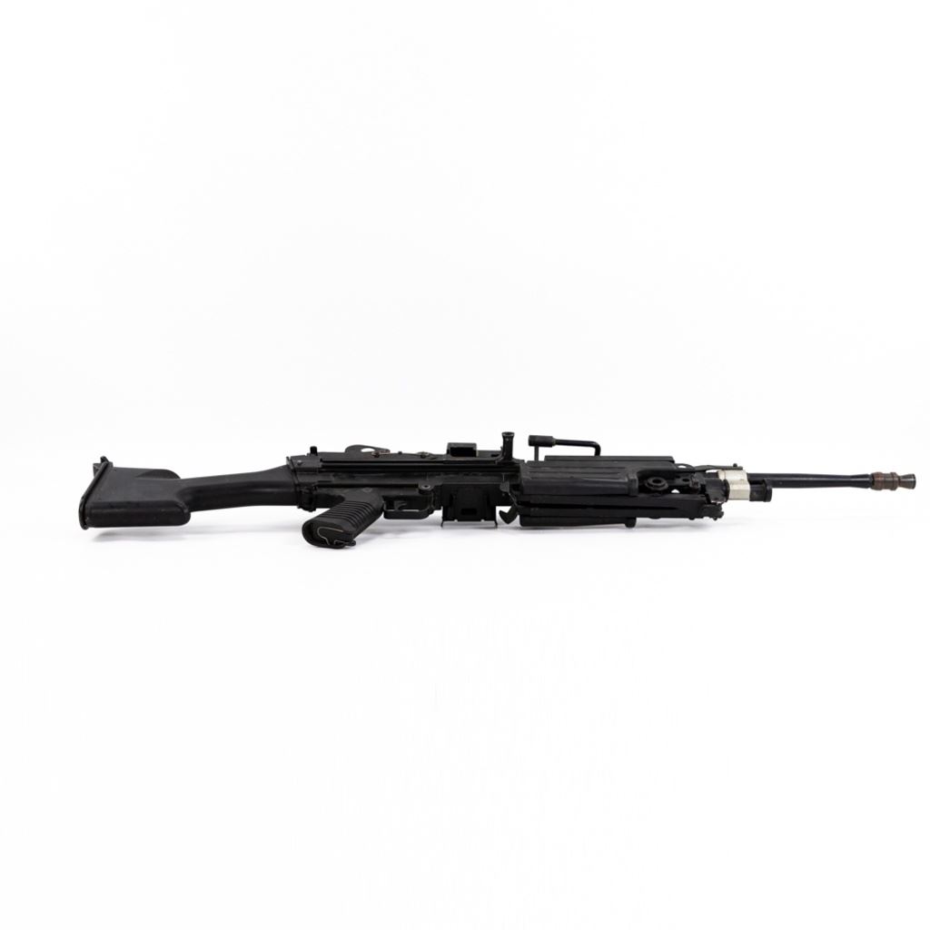 Full Size Metal Replica of FN- Minimi M-249 SAW. Nice heavy weight replica made by ECHO1. This electric airsoft gun was used as a movie prop so it is well worn and missing parts. It is untested and sold as a display item only. See Photos.