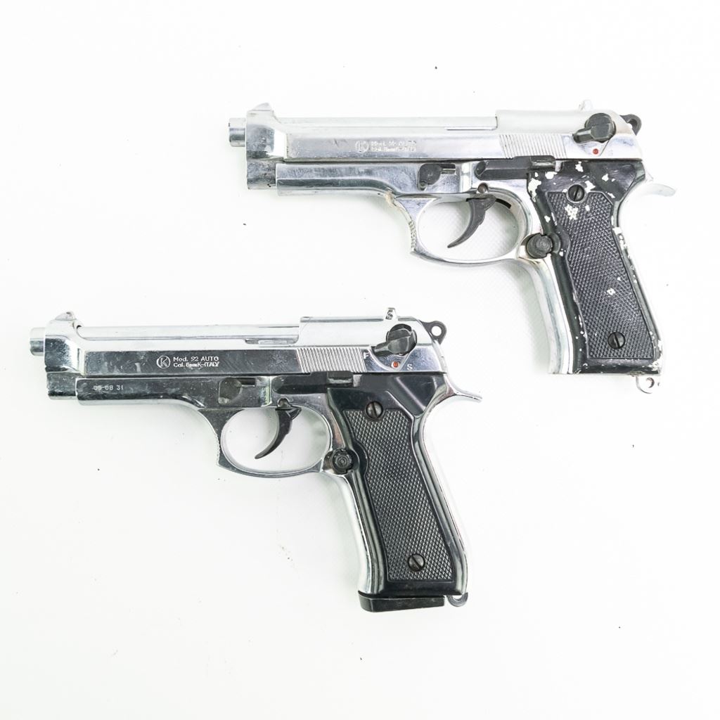 Lot 2290 2 Nickeled Kimar Beretta Blank Pistol Movie Props