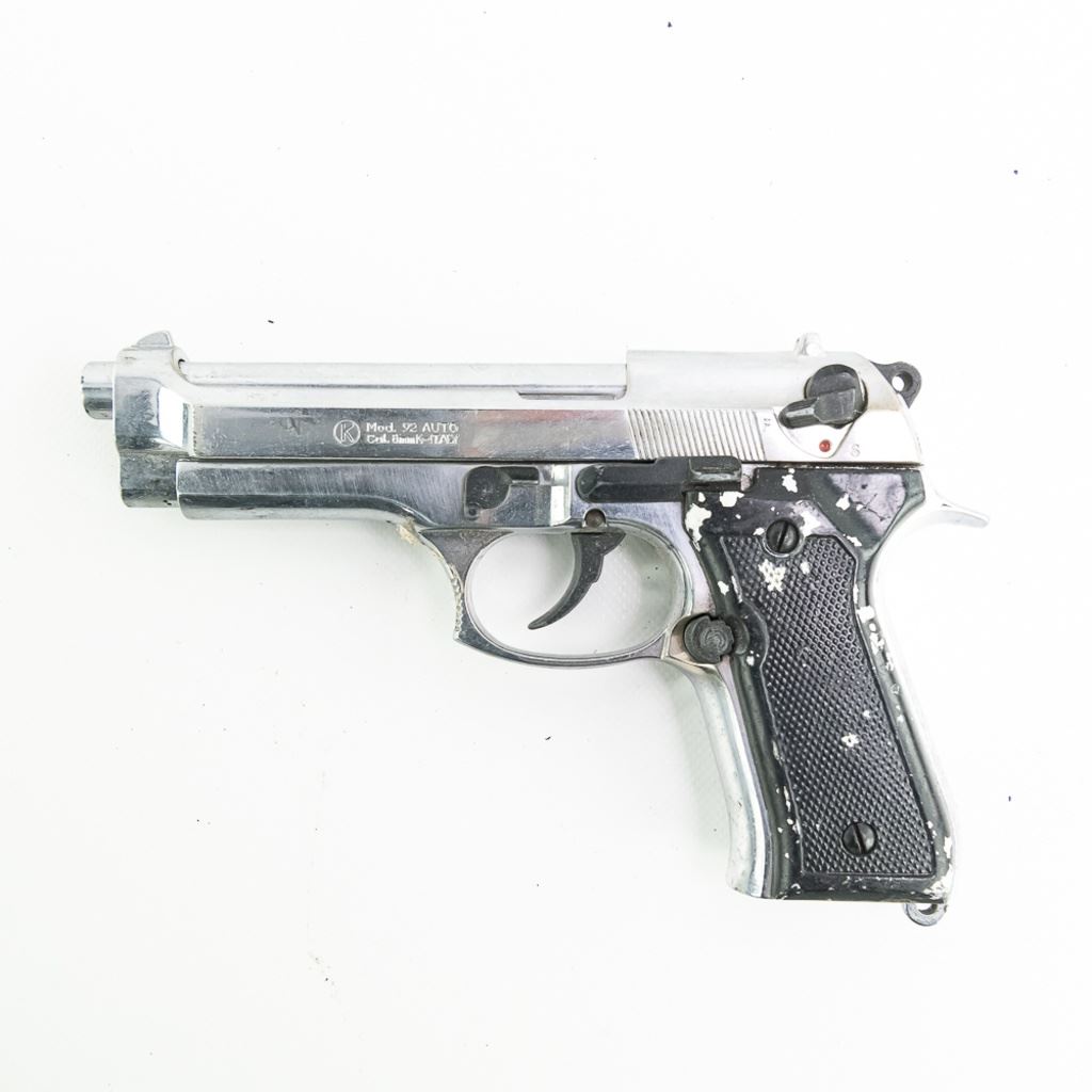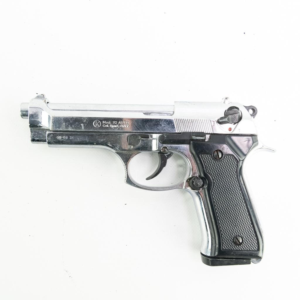 2 Kimar Italian made Beretta 92 8mm Blank Guns. These Blank Guns were used as movie and television props so they are worn and scratched, and may be missing parts. They are untested and sold as display items only. Note due to regulations these Cannot Ship To: CT, DC, IL, KS, MD, MN, NJ, NY, PA, PR, RI, WI. Please check before bidding. See photos.