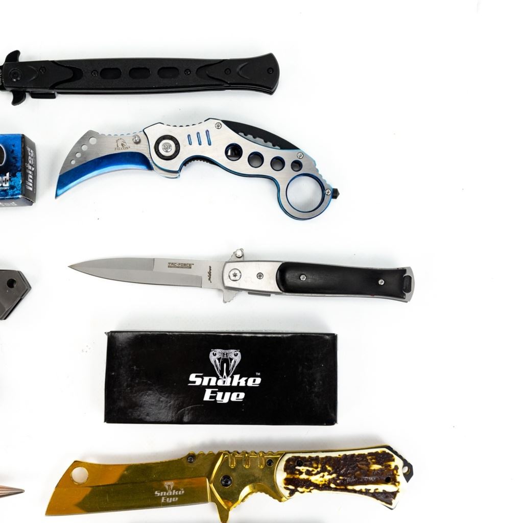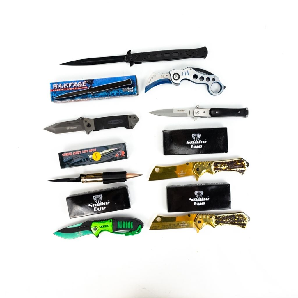 NOTE: The items in this lot are spring-assisted opening knives. Please ensure this product is legal to own and have shipped to you before bidding. Donley auctions is not responsible for ensuring legality for bidders. Thank you.