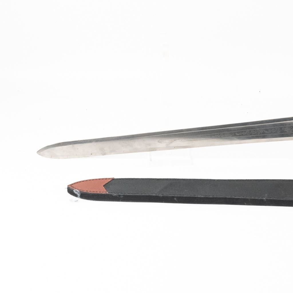 Frost Cutlery fantasy sword in brand new condition with leather scabbard. Very neat display piece. 43" overall with 32" blade.