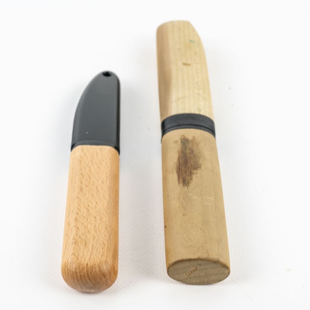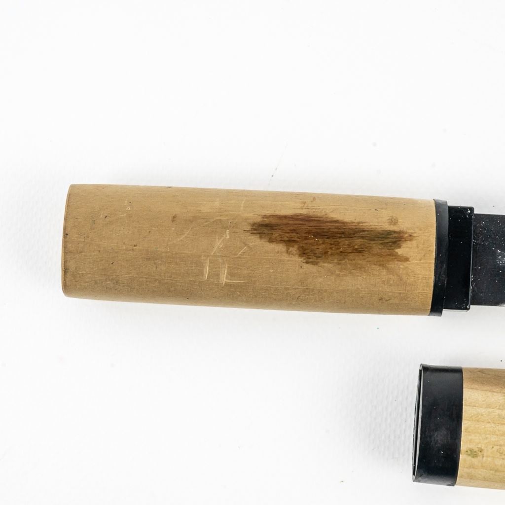 1 Japanese hand made Shouzou carving/whittling knife. 1 Cold Steel Japanese made mini-Shouzou. Excellent knives for carving or whittling wood. Both are brand new with perfect edges. Minor dings in wood handles from storage. See photos.