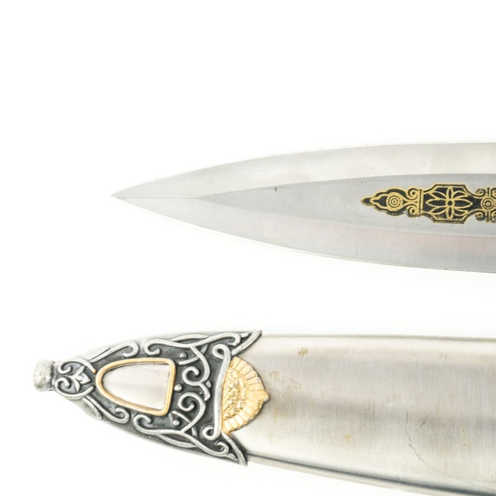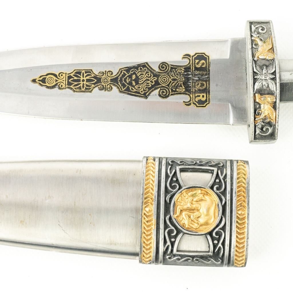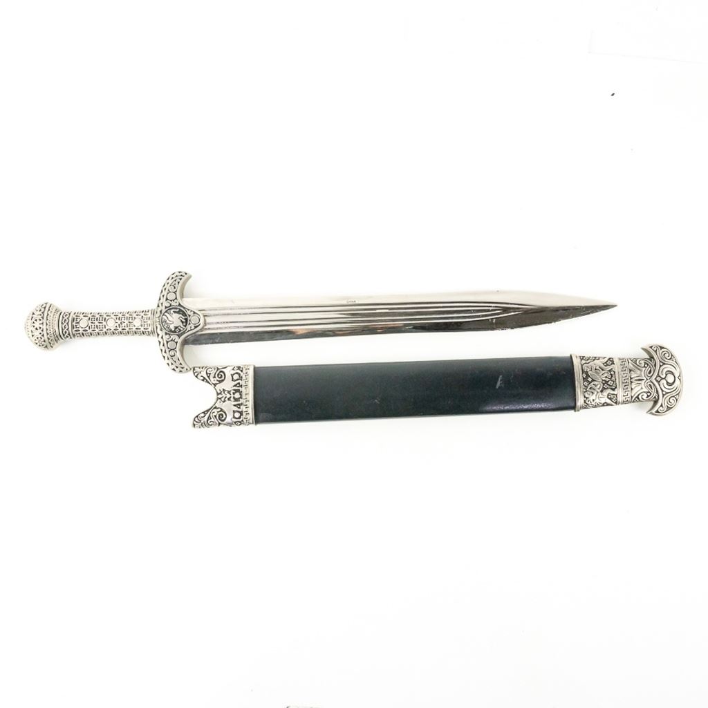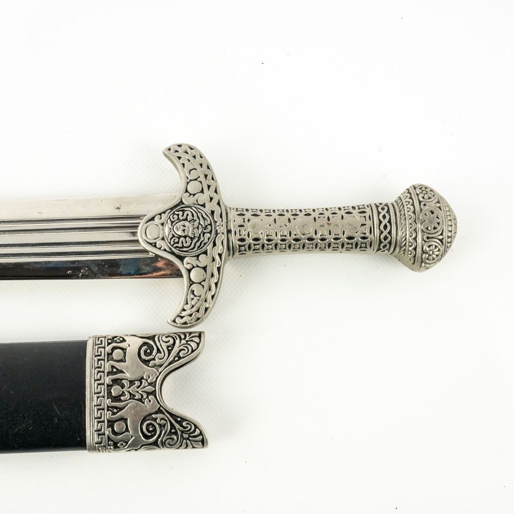 3 Fantasy short swords. Condition varies from very good to excellent. Style and manufacturer varies. All imported and range in length from 12" to 20" with scabbards. See Photos.
