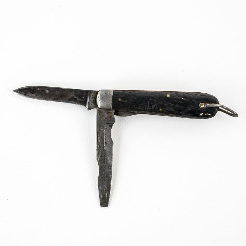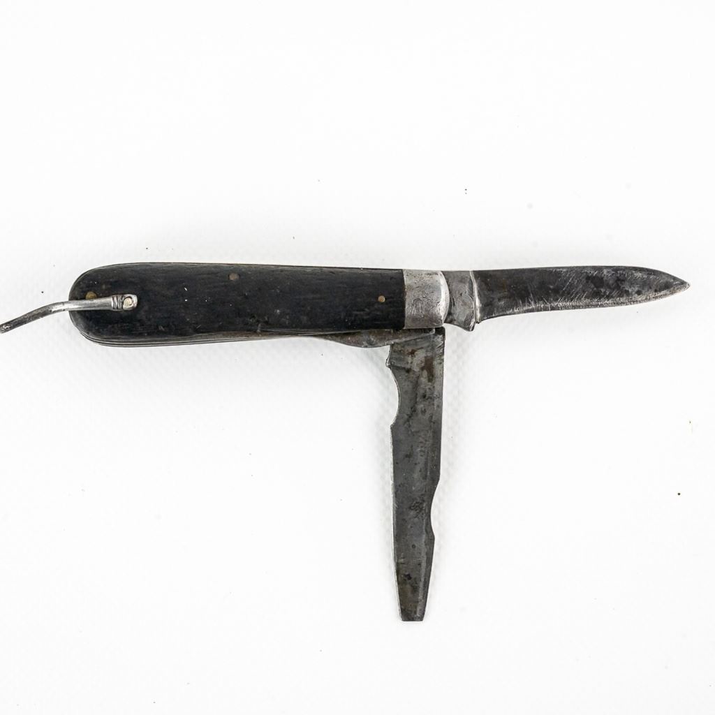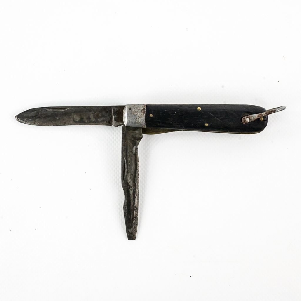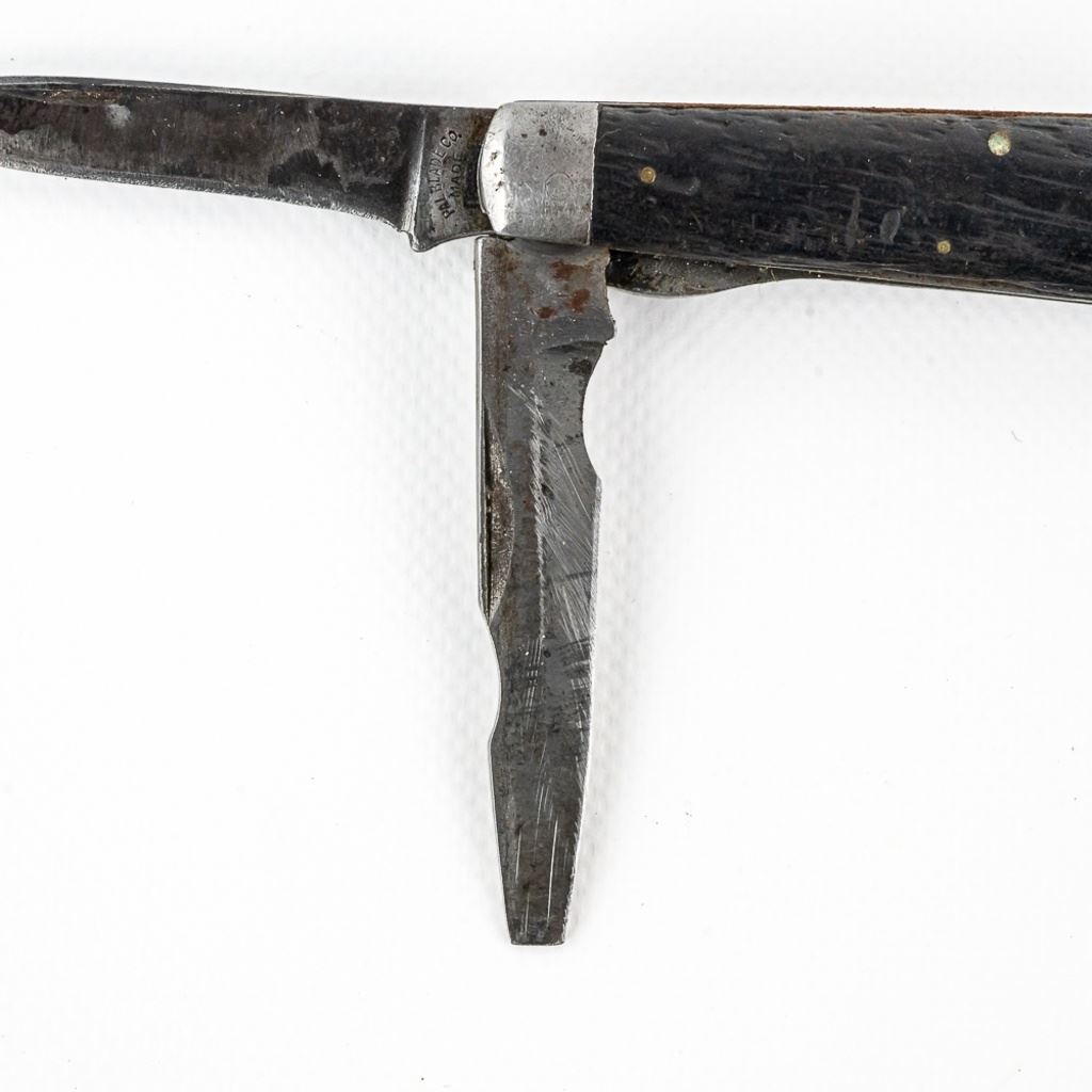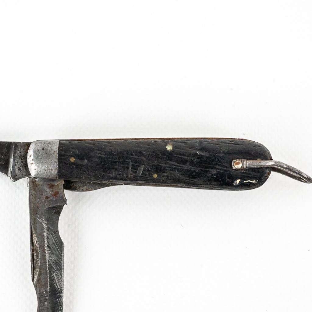 2 1940s Vintage TL-29 Electrician's knives. 1 each PAL and Utica Cutlery. Both are well worn and sharpened down from usage. PAL knife bail has been reshaped. Nice older collector tools. See photos.