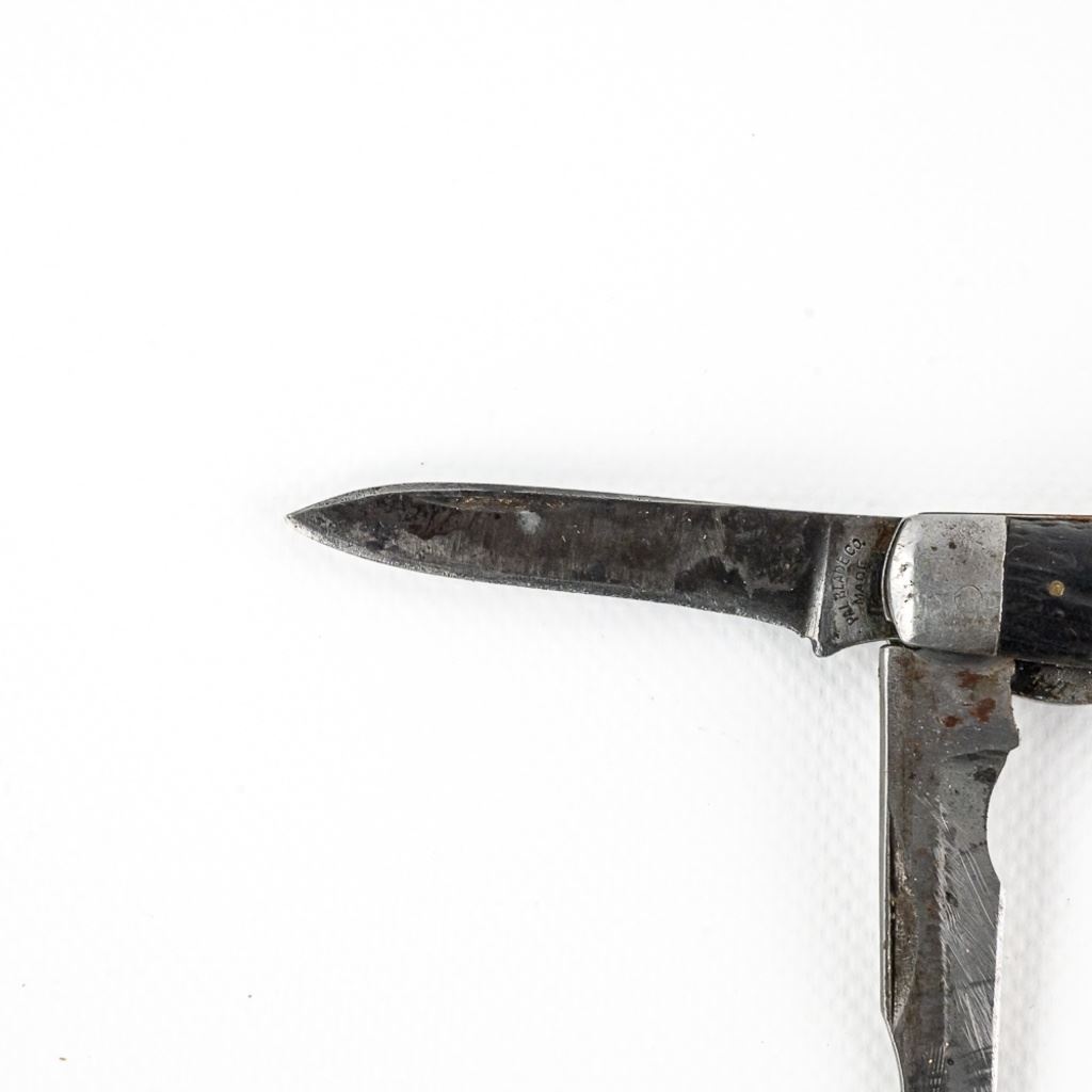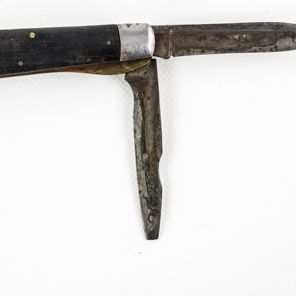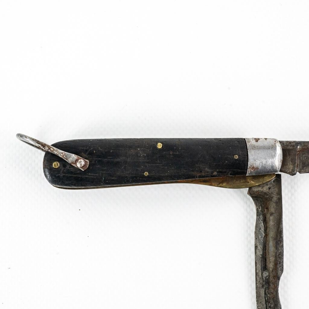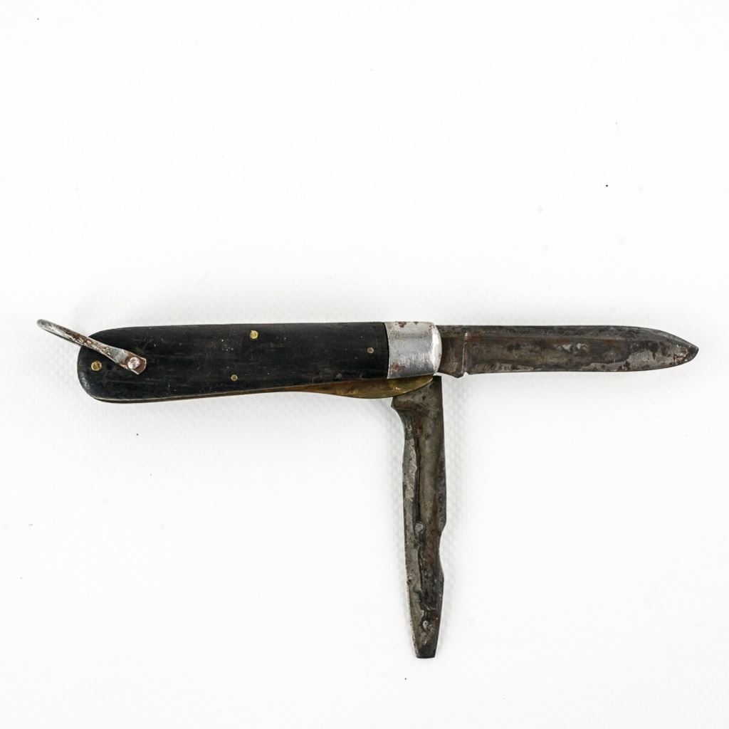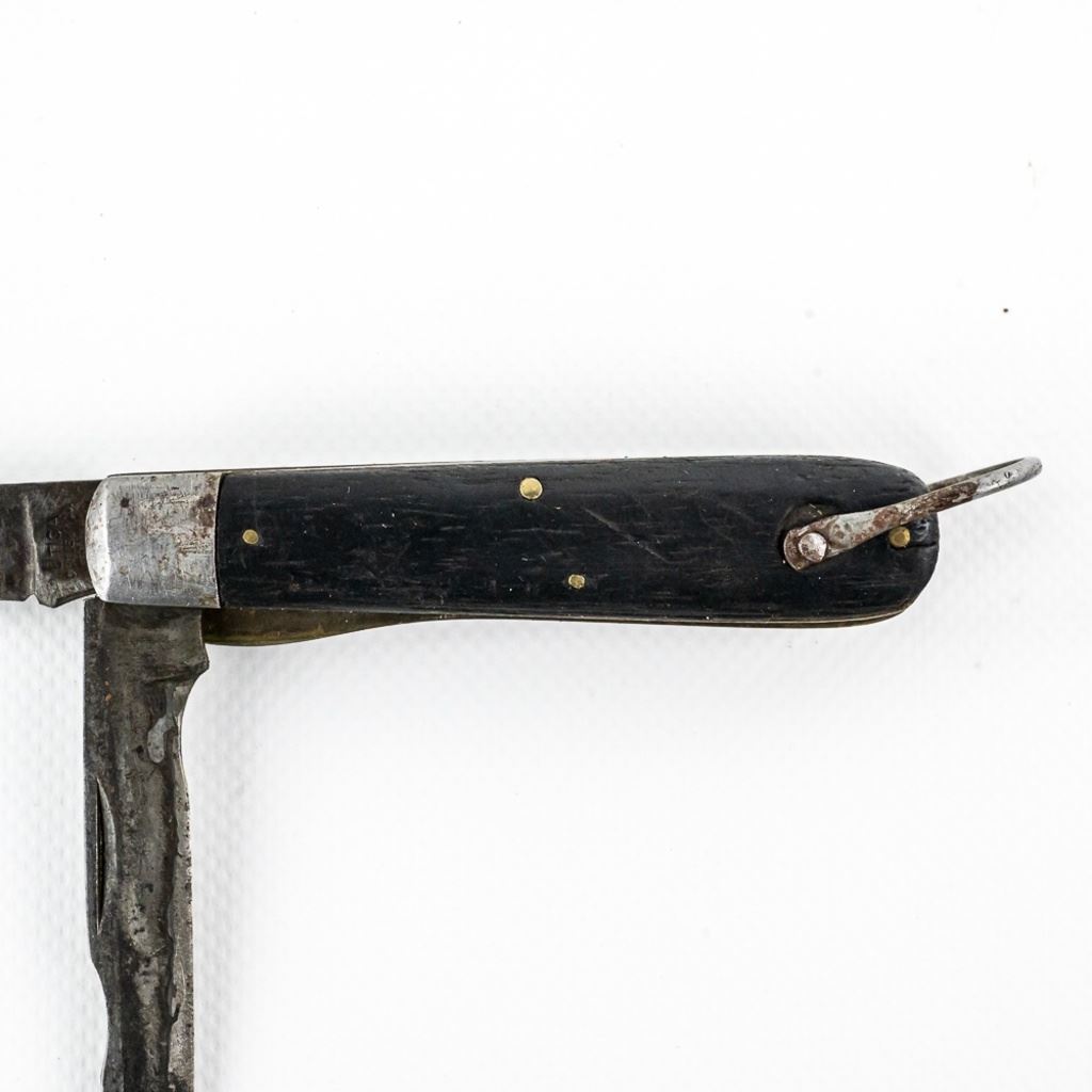 2 1940s Vintage TL-29 Electrician's knives. 1 each PAL and Utica Cutlery. Both are well worn and sharpened down from usage. PAL knife bail has been reshaped. Nice older collector tools. See photos.