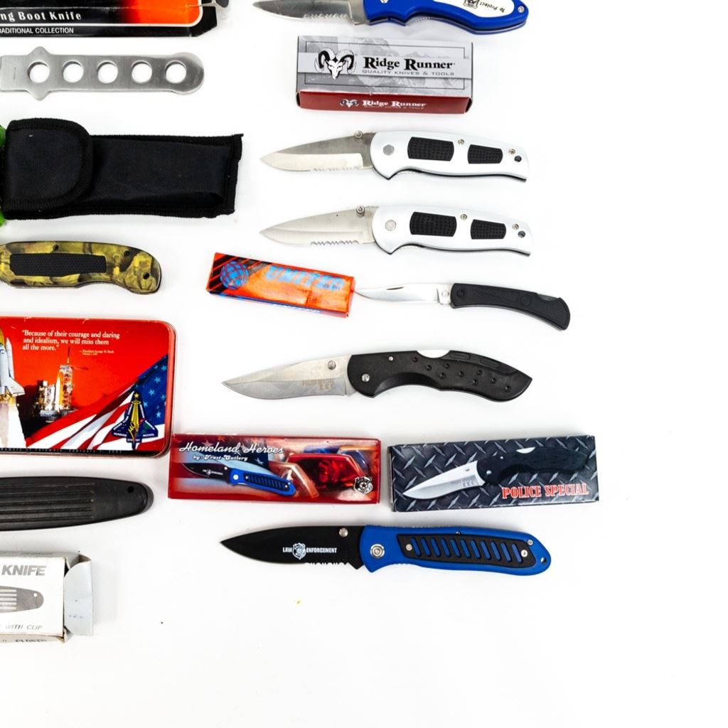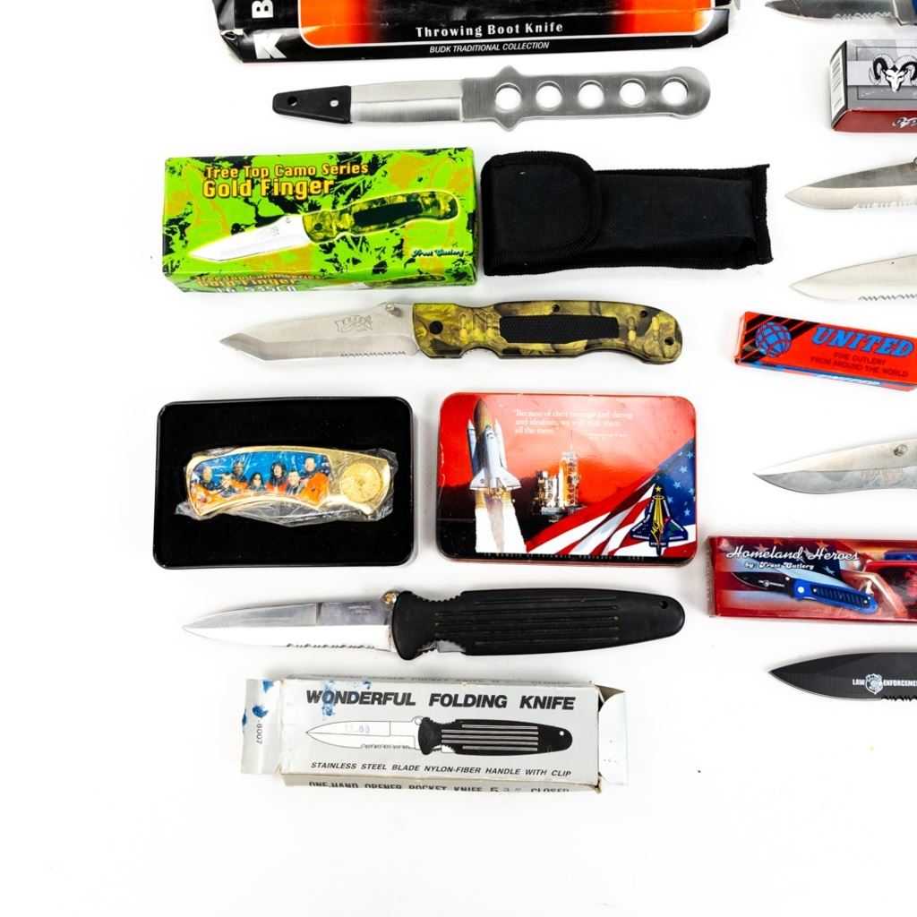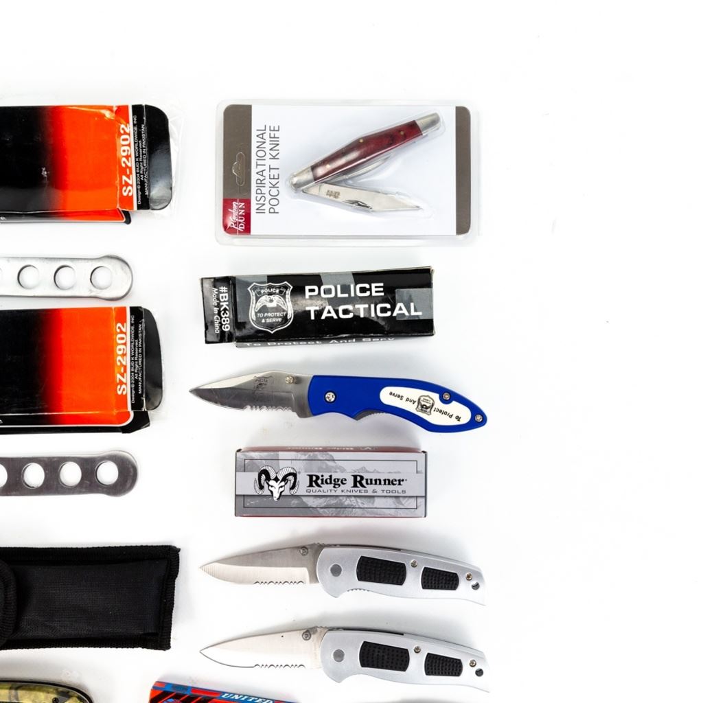 12 Imported assorted pocket and throwing knives. Various manufacturers and conditions as seen in photos. Good Flea Market assortment.