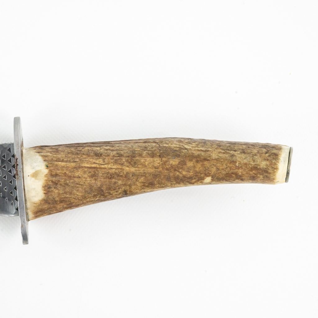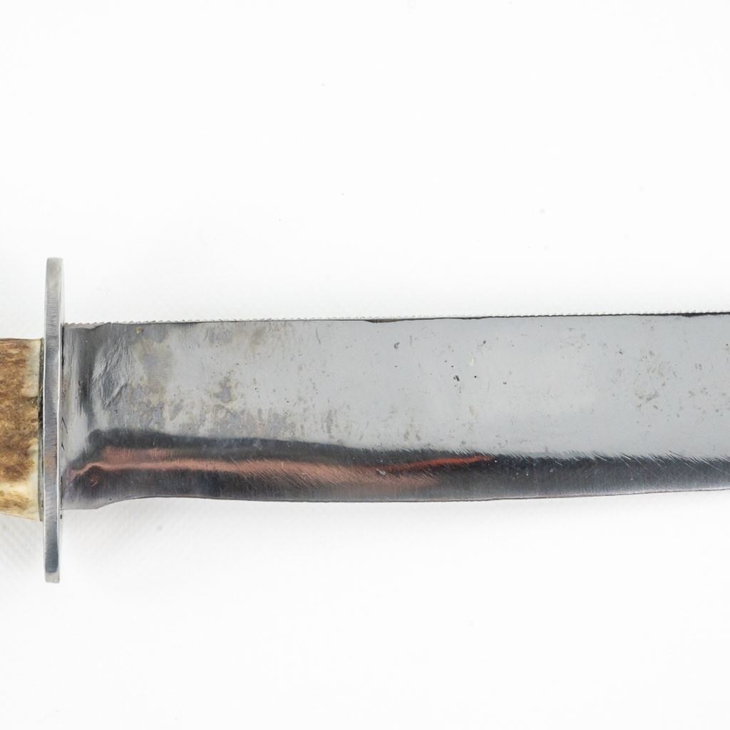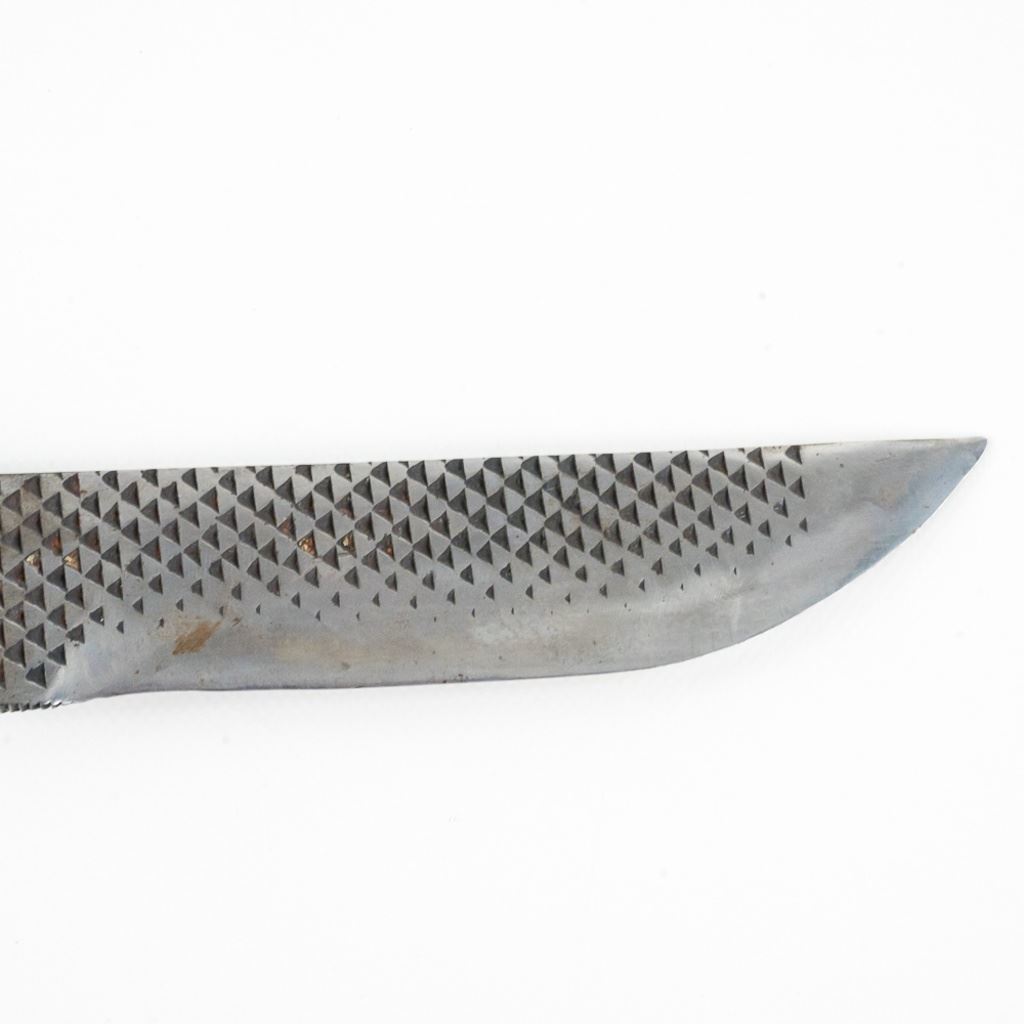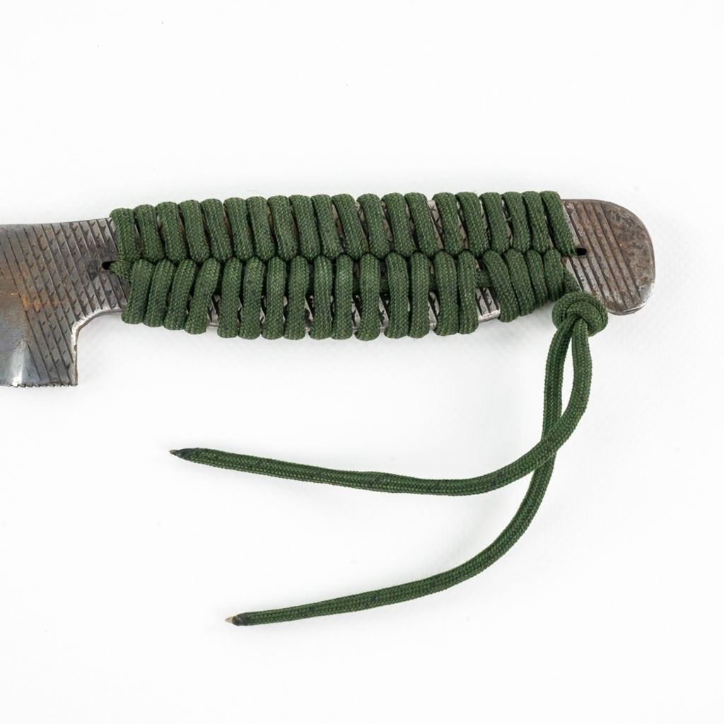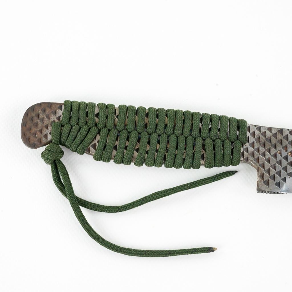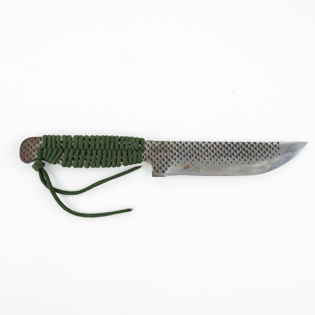 2 Bowie-style knives hand made from used files. Antler handle knife is 16.5" overall with 10" blade. Cord wrapped handle is 12.5" overall with 7" blade. No sheaths included, sorry. See Photos.