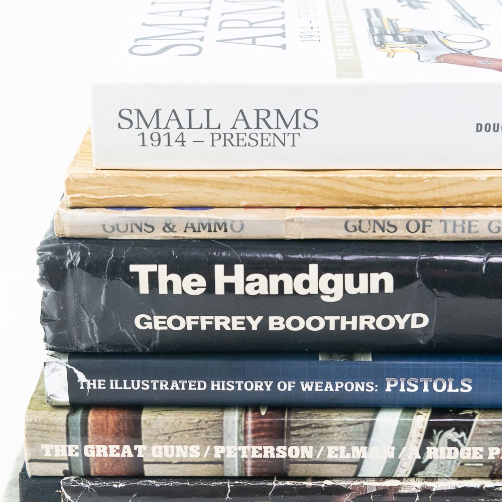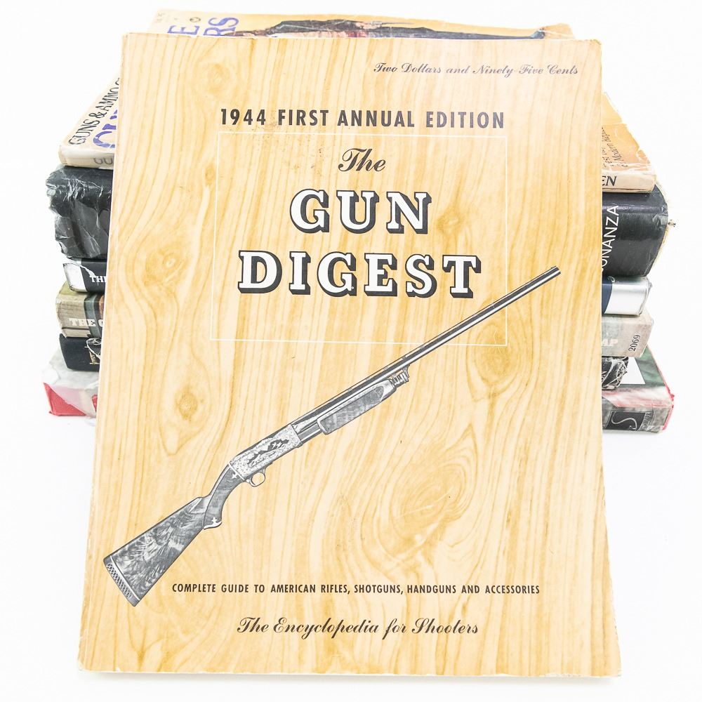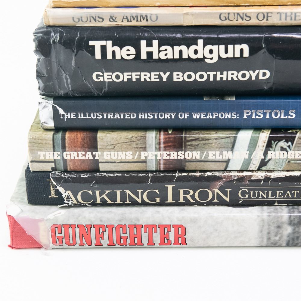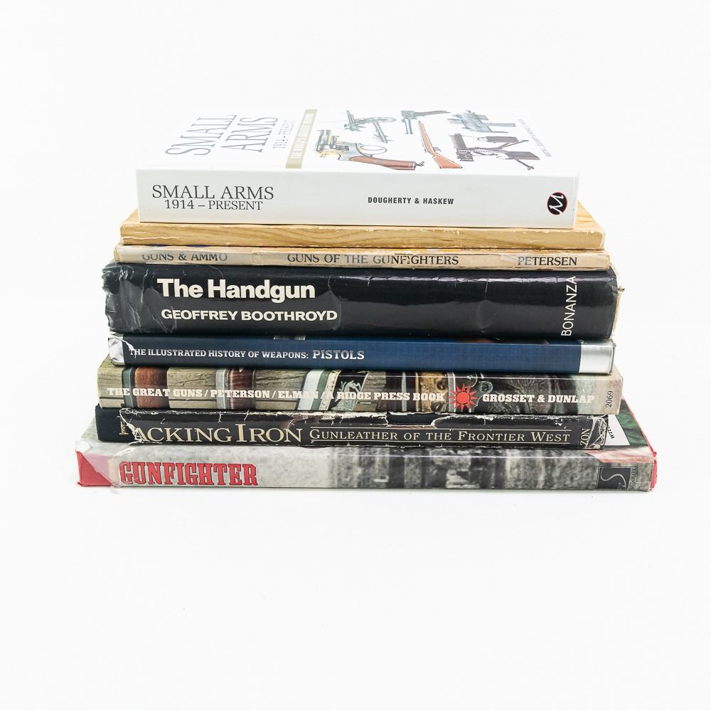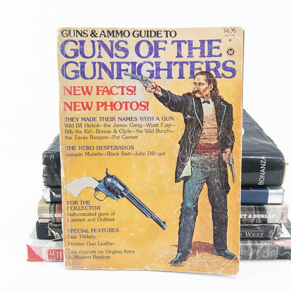 Includes "Guns & Ammo Guide to Guns of the Gunfighters", 1975, "1944 First Annual Edition of The Gun Digest", "Small Arms 1914-Present, World's Greatest Weapons", "The Handgun", evolution of personal weapons, "The Illustrated History of Weapons, Pistols", "The Great Guns" during the 1700's, "Packing Iron Gunleather of the Frontier West" and "The Taming of he West, Age of the Gunfighter", used condition.