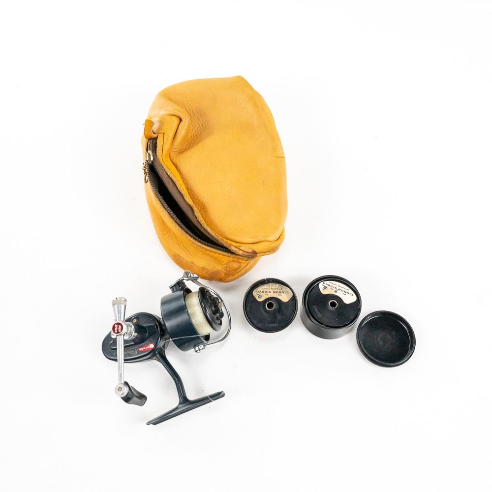 -Garcia Mitchell 408 reel in excellent condition w/2x extra spools and leather case.