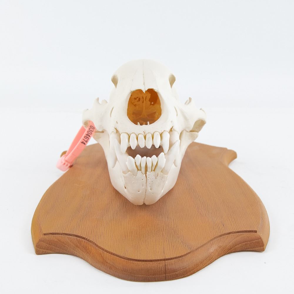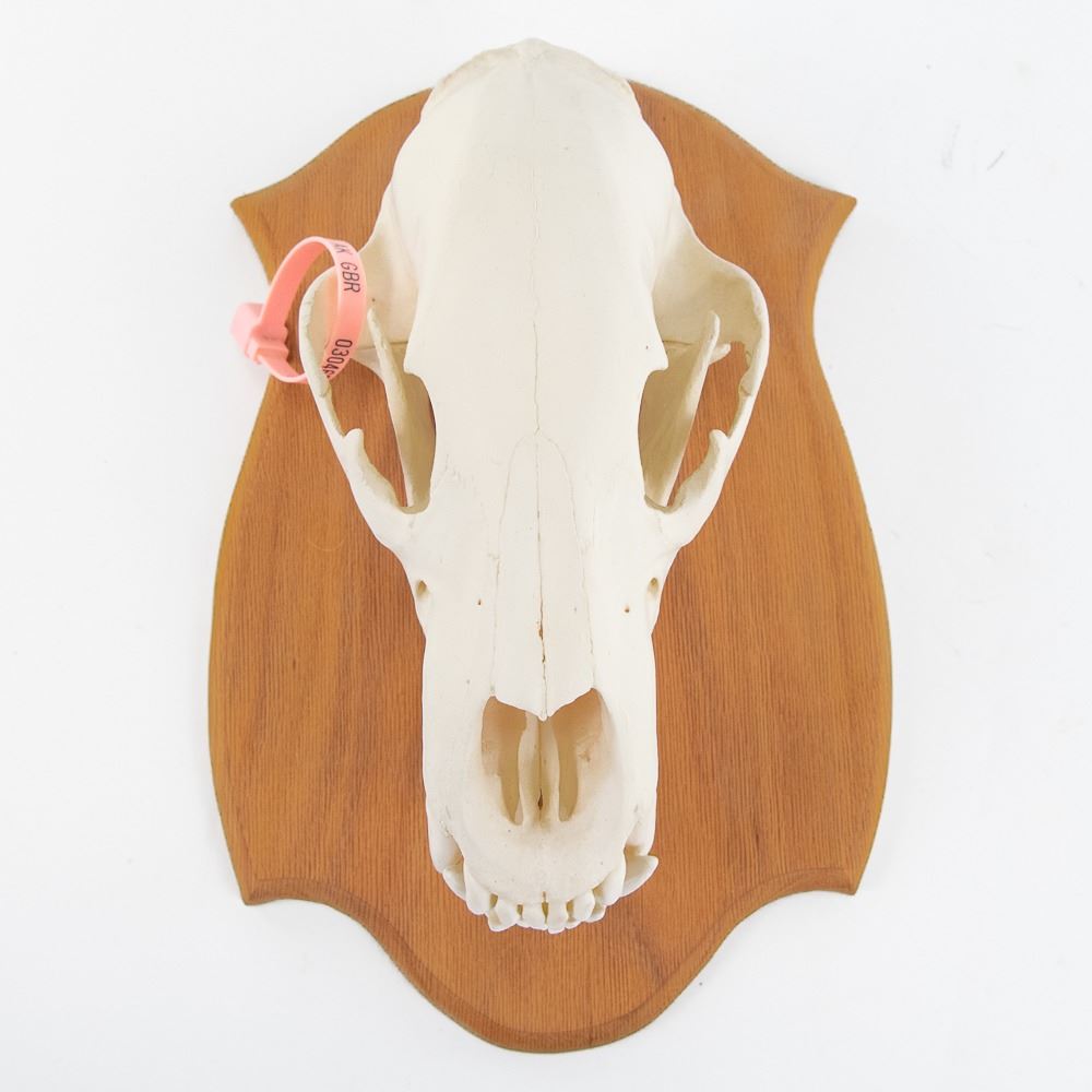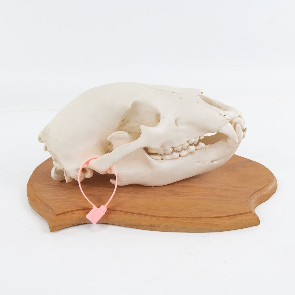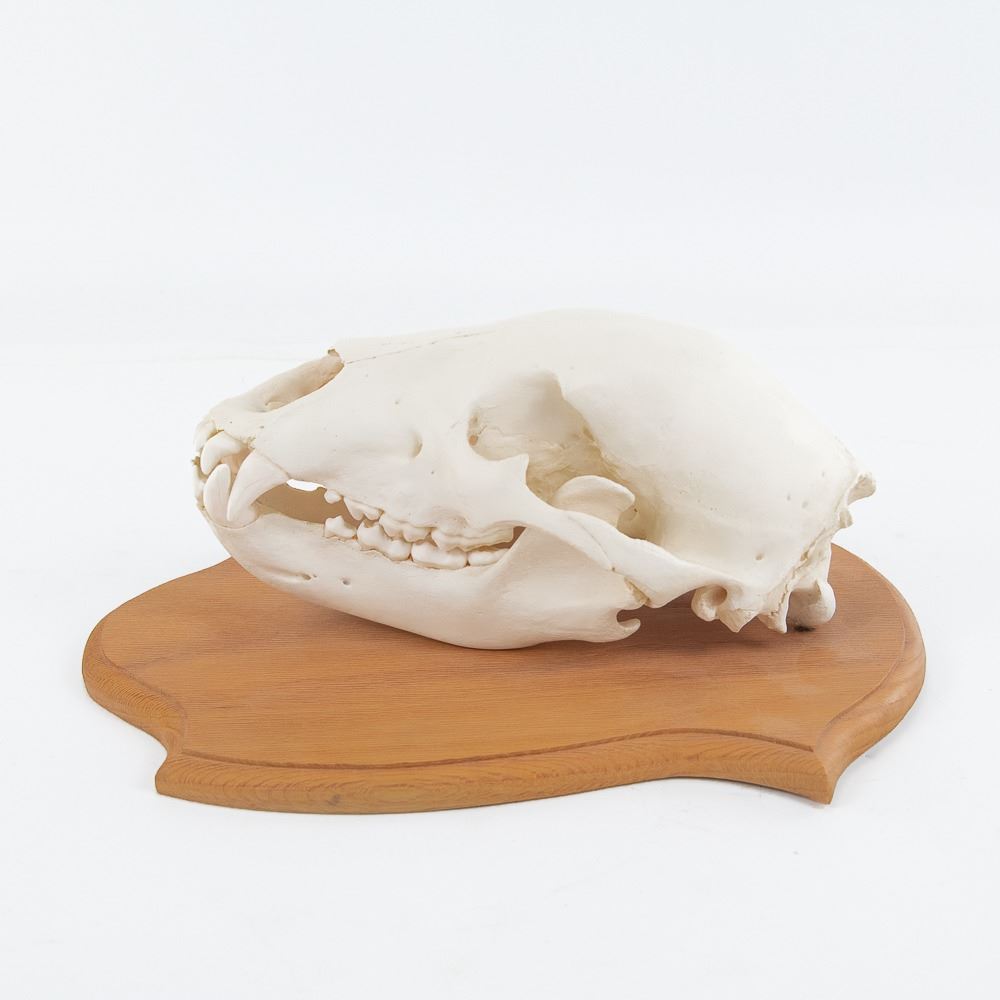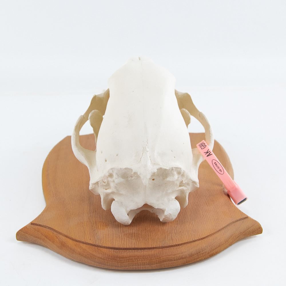 Genuine Kodiak Bear 13" Skull With Tag on Wood Plaque. Beautifully bleached and mounted. Trophy taken on Kodiak Island by bow. Padding and lining excellent. Heavy coat with no shedding. Bear measures 65" nose to tail, 81" nose to rear claws, and 75" wide front claw to front claw.